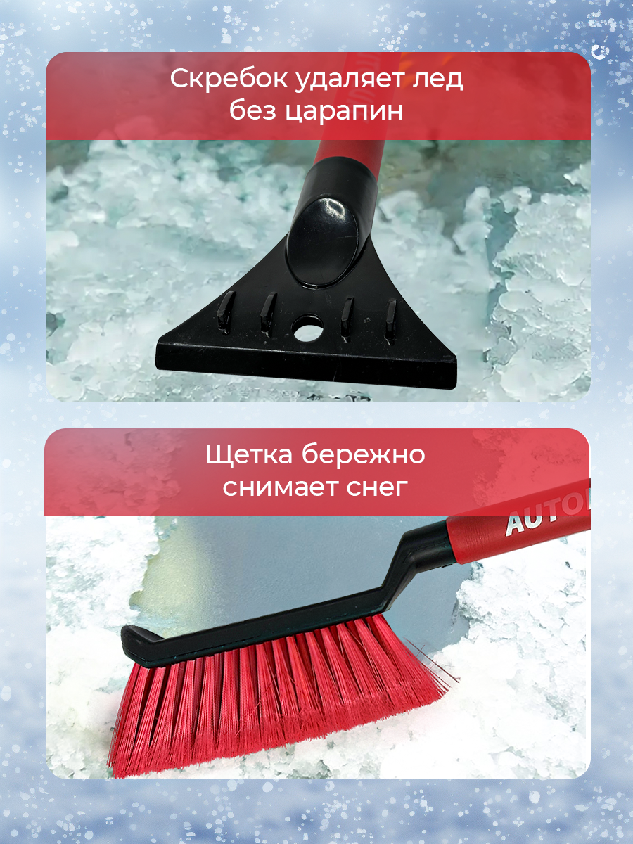 Щетка автомобильная для снега со скребком черно-красная 42см интересное: