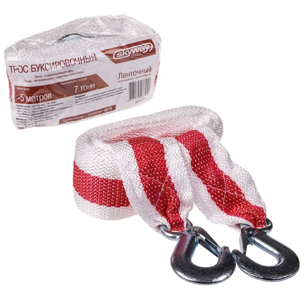 Трос буксировочный (7 т) 5 м "SKYWAY" ленточный (2 крюка в пакете) интересное:
