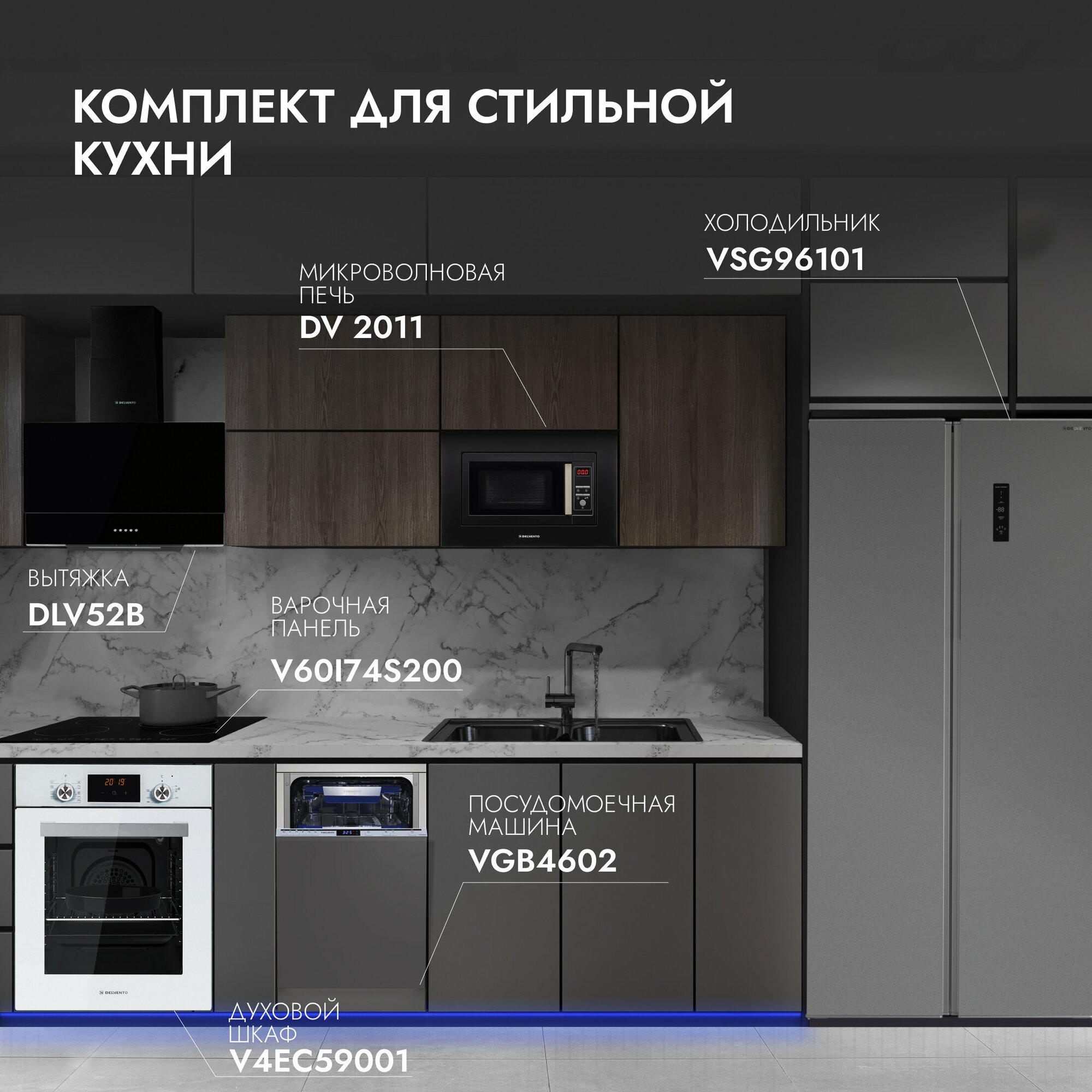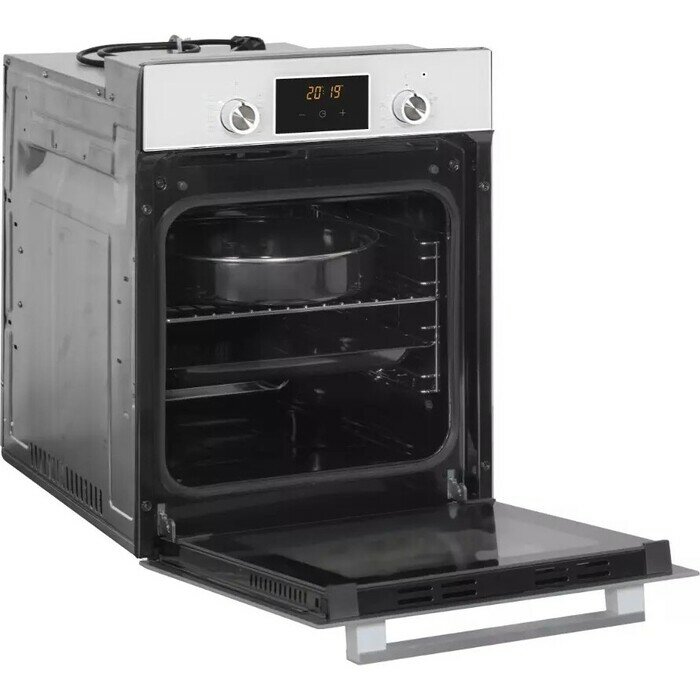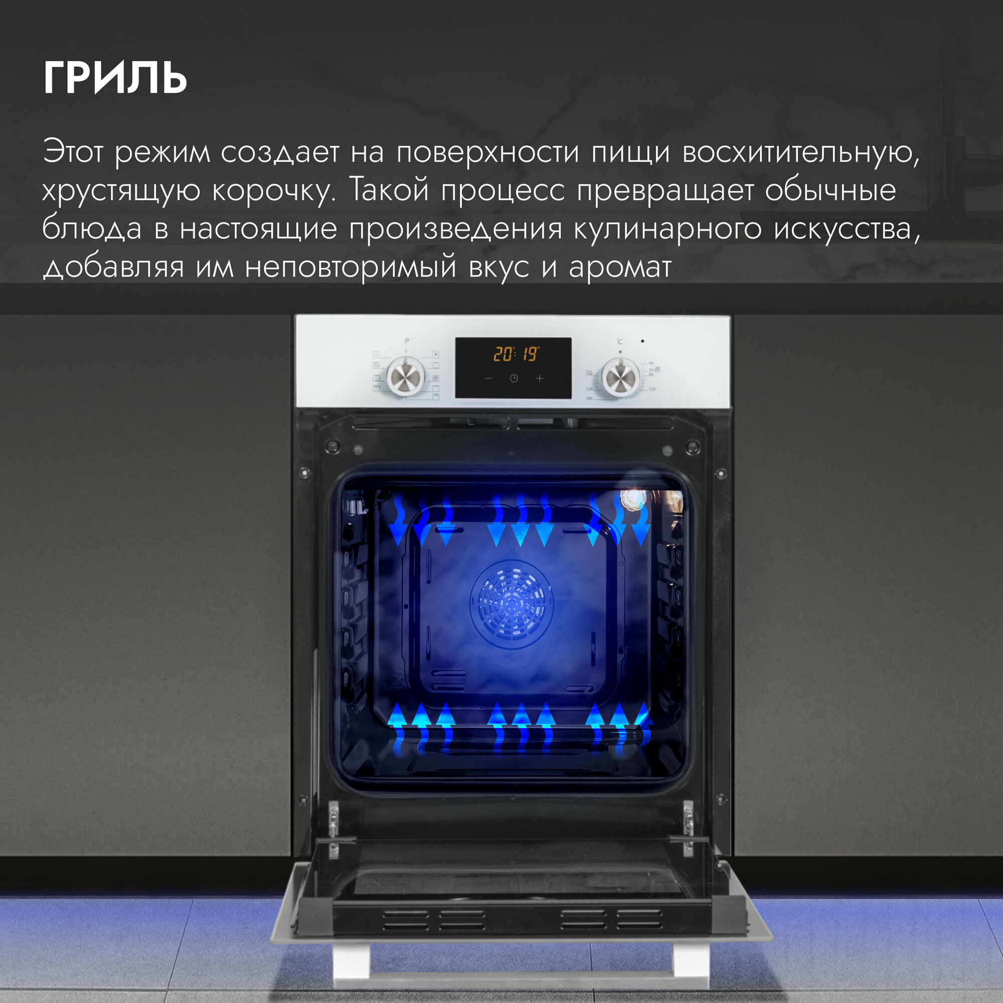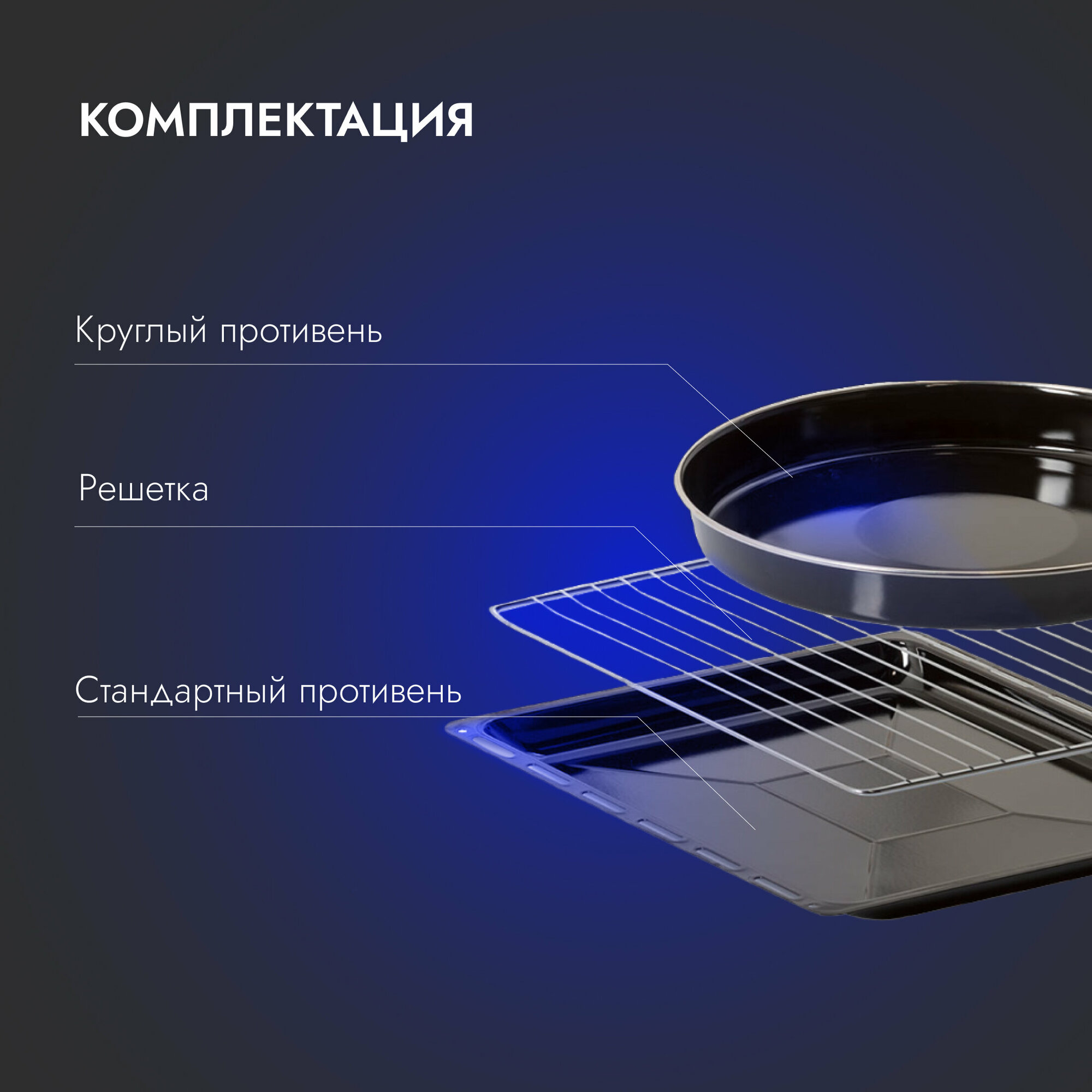 Духовой шкаф электрический встраиваемый 45см белый / 9 режимов (гриль + конвекция) DELVENTO V4EC59001 / стеклянный фасад / дисплей, цифровой таймер, часы / пароочистка / двойное стекло LOW-E / подсветка / хром. решетка и 2 противня: стандартный + круглый интересное: