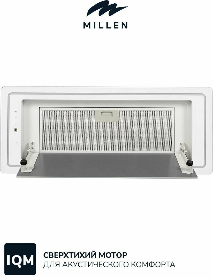 Купить Кухонная вытяжка встраиваемая, MILLEN MBKHG 901 WH, белый, Свободный выход 850-1050 м3/ч, Управление Сенсорное, пульт д/у, 9 скоростей, отделка стекло