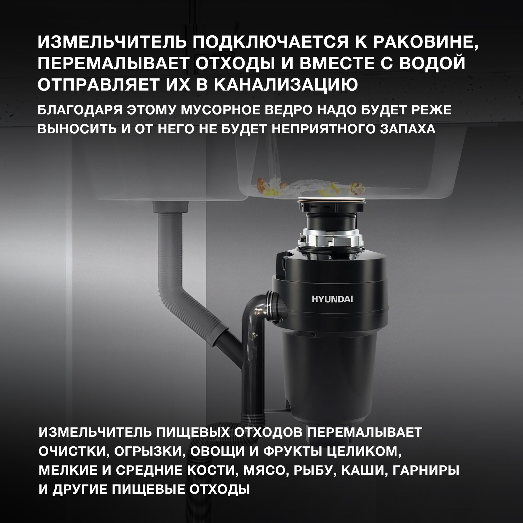Измельчитель пищевых отходов кухонный Hyundai HFWD 12560 560 Вт, электрический, в раковину