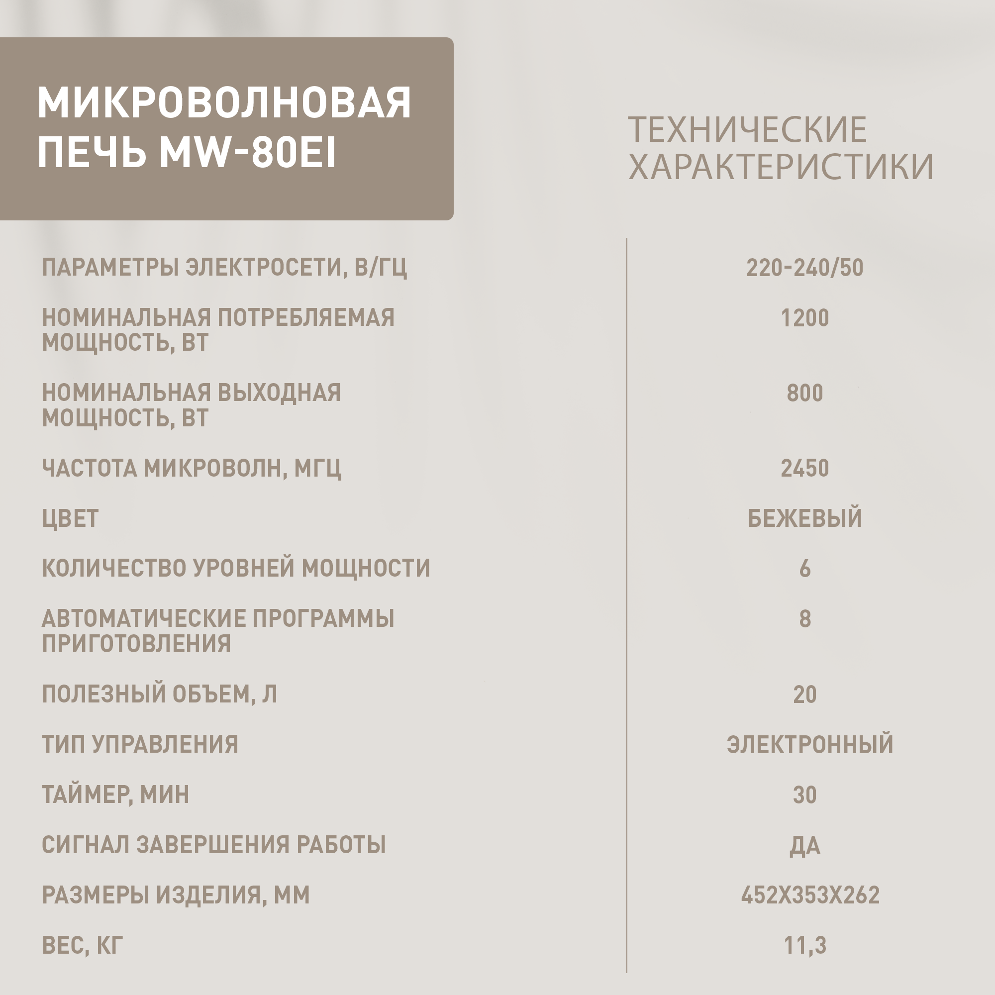 Микроволновая печь Oasis MW-80EI, бежевый