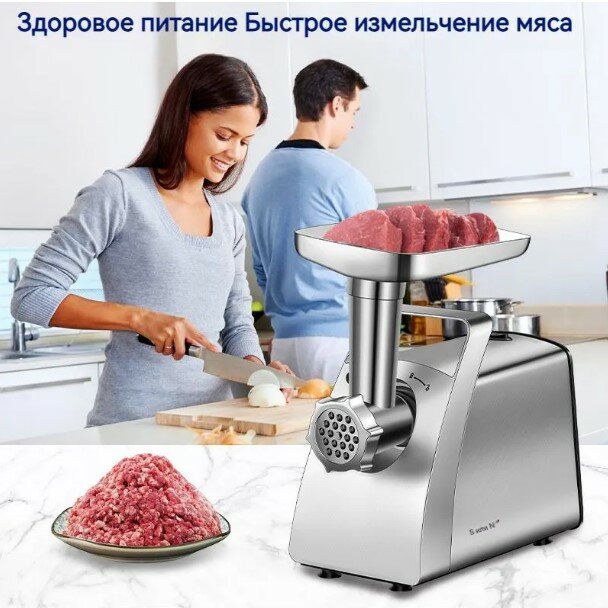 Мясорубка электрическая для фарша, серая 2400Вт, функция реверс,3 диска нарезки, насадки колбас, сосисок, домашняя интересное: