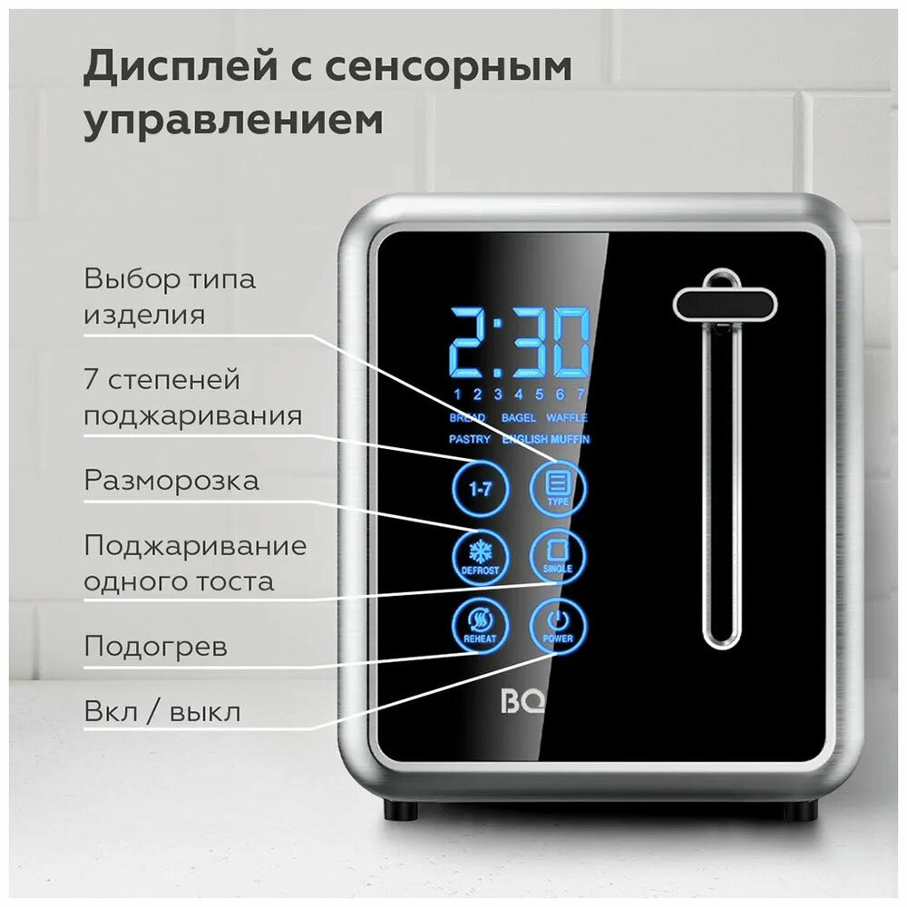 Тостер BQ (БИ-КЬЮ) T4002, 850 Вт, 2 тоста, 7 режимов, сенсорное управление, нержавеющая сталь, 86198225