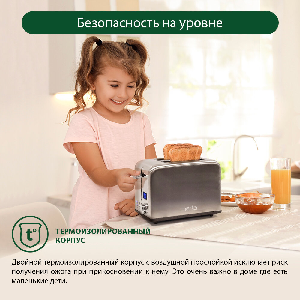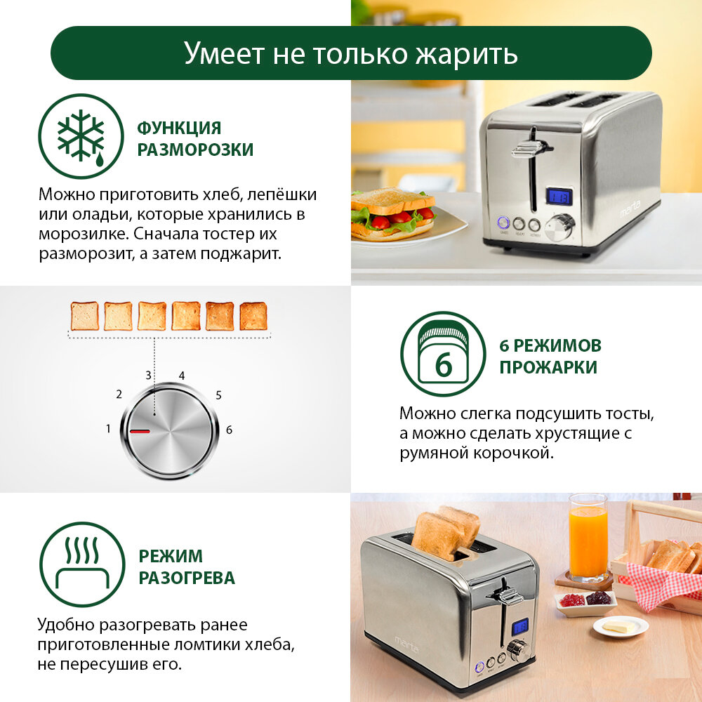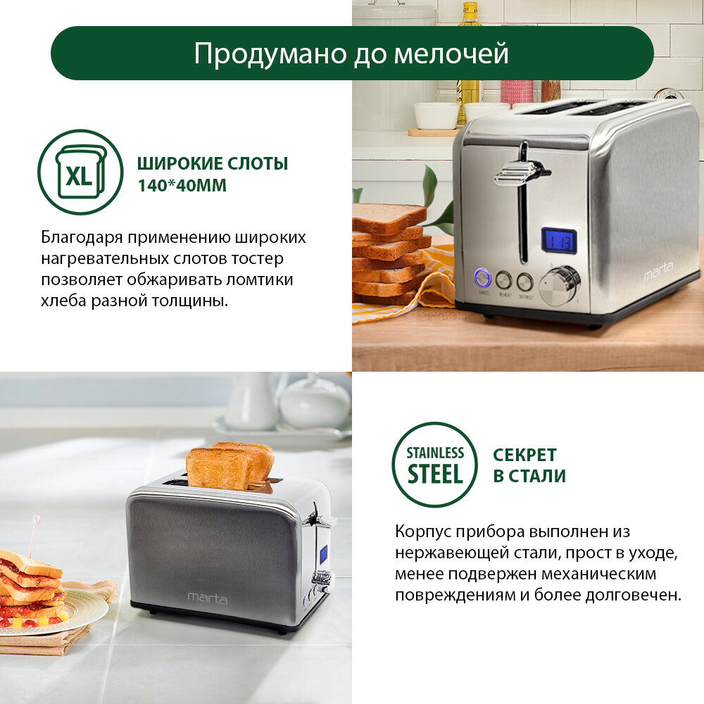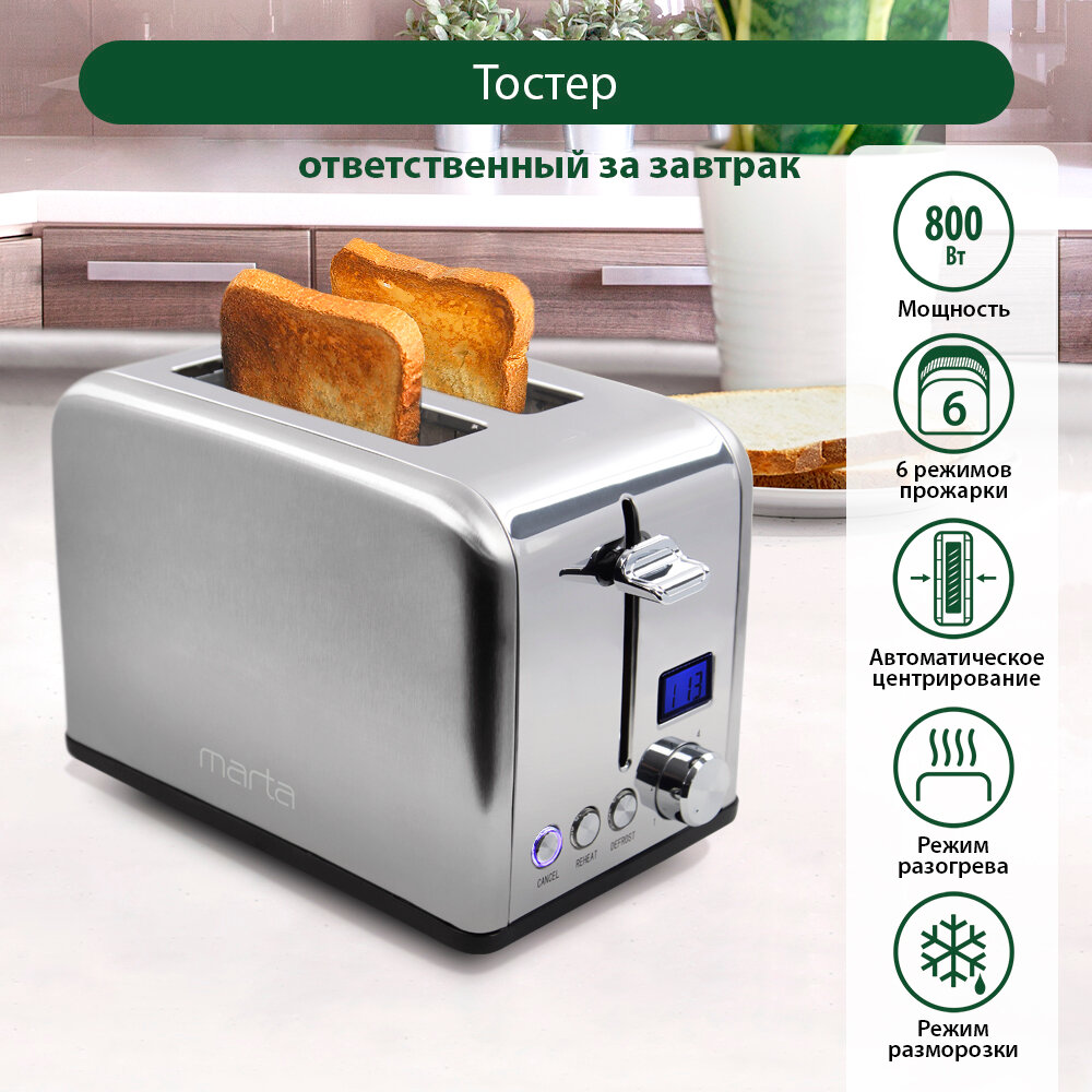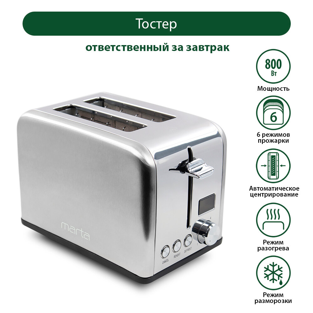Ниже Вы можете прочитать отзывы на Тостер MARTA MT-TS1727A сталь, ознакомится с подробными характеристиками, посмотреть интересные обзоры и фотографии на Тостер MARTA MT-TS1727A сталь.