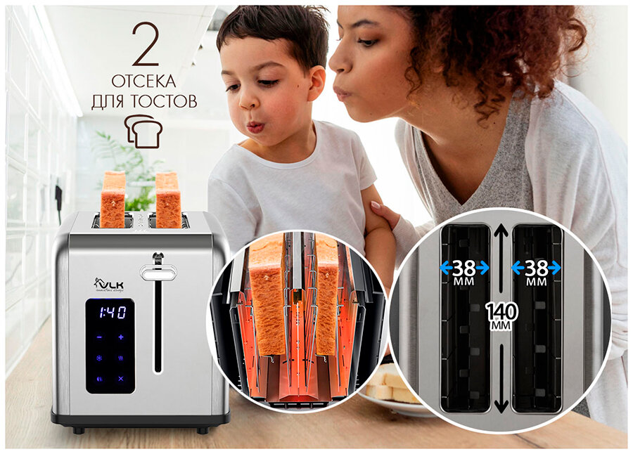 Тостер электрический для хлеба VLK Palermo-103, 900 Вт, 6 степеней поджаривания, LED-дисплей c сенсорным управлением