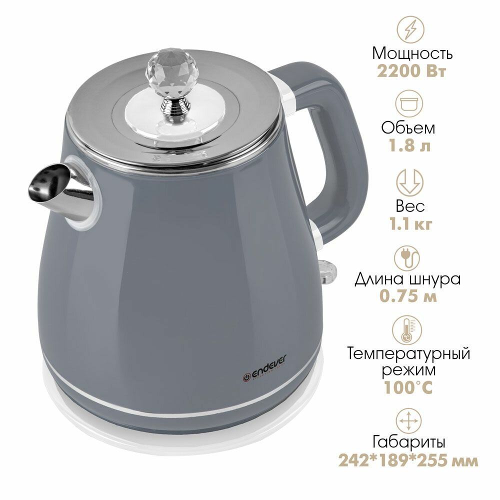 Купить Чайник электрический Endever Skyline KR-254S, 2200Вт, серый