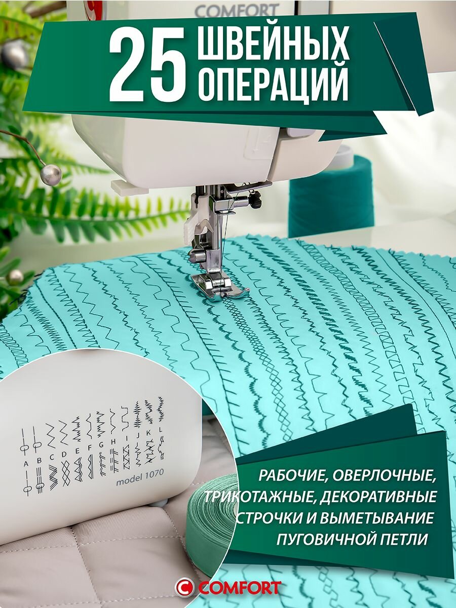 Швейная машина Comfort 1070, 24 операции, петля полуавтомат, нитевдеватель, мощный двигатель 100 Вт
