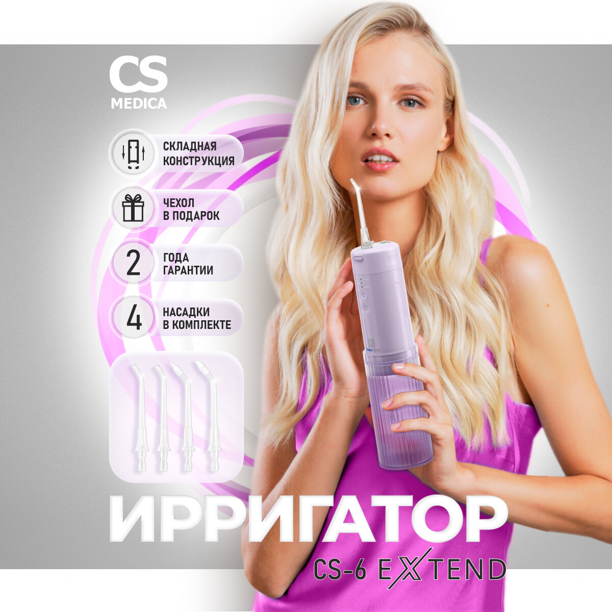 Ирригатор для зубов портативный CS Medica CS-6 Extend Lilac