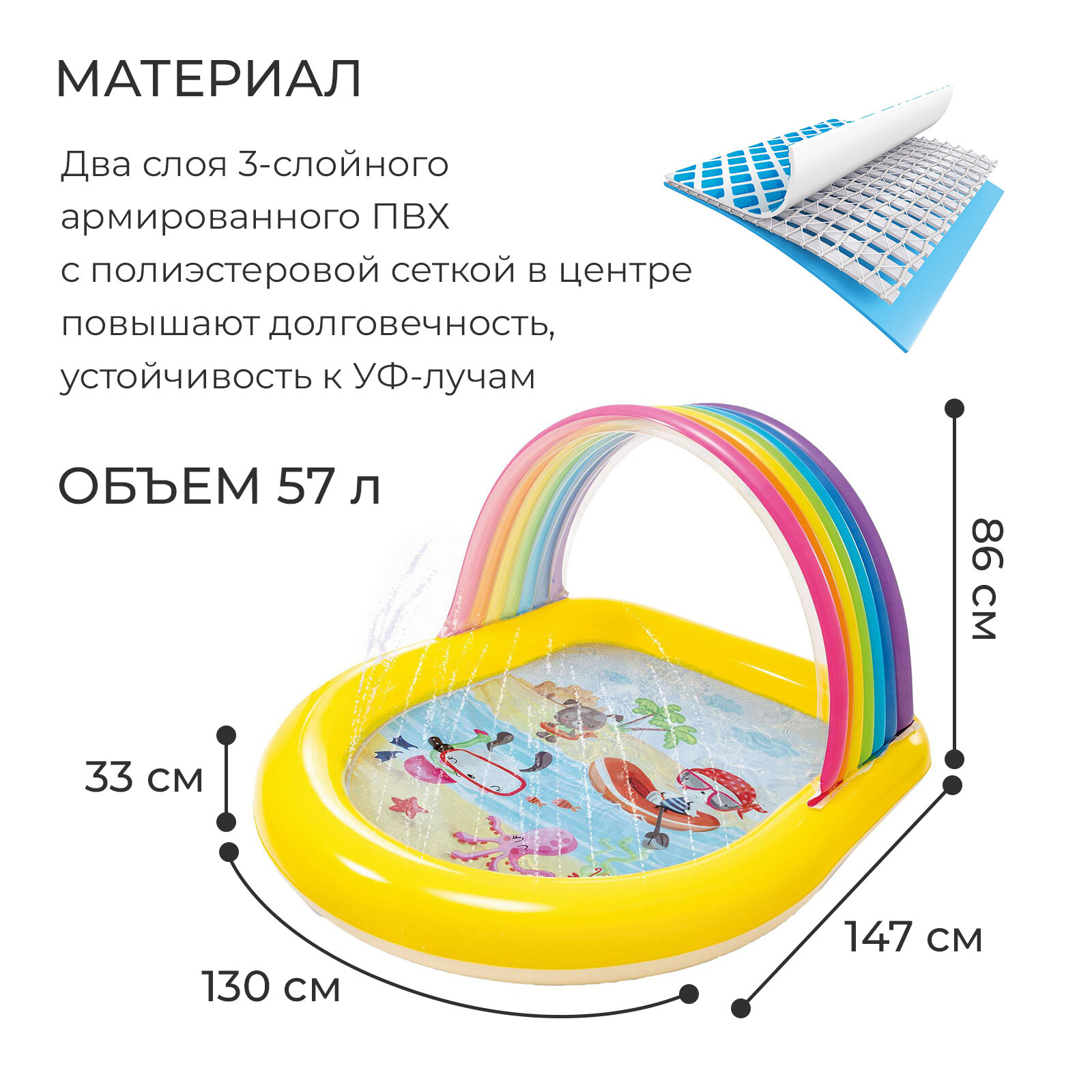 Бассейн надувной детский Радуга, 147 х 130 х 86 см, с навесом и фонтаном, от 2 лет, 57156NP интересное: