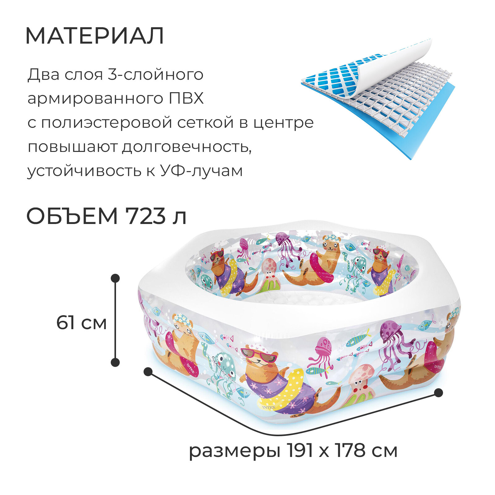 Бассейн надувной «Морской риф», 191 х 178 х 61 см, от 6 лет, 56493NP интересное: