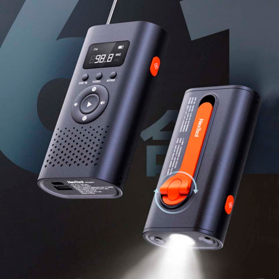 Портативная аварийная радиостанция (FM/AM) Mijia 6 в 1 с ручным генератором, фонариком, сигнализацией и лазером интересное: