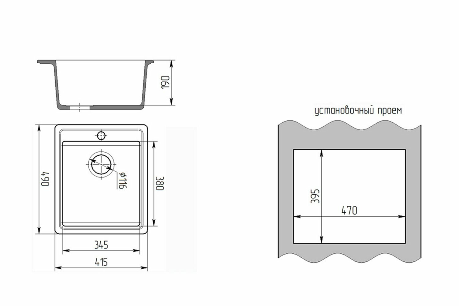 Мойка ML-GMS18 стандарт прямоугольная, черный (308), 415*490*190мм