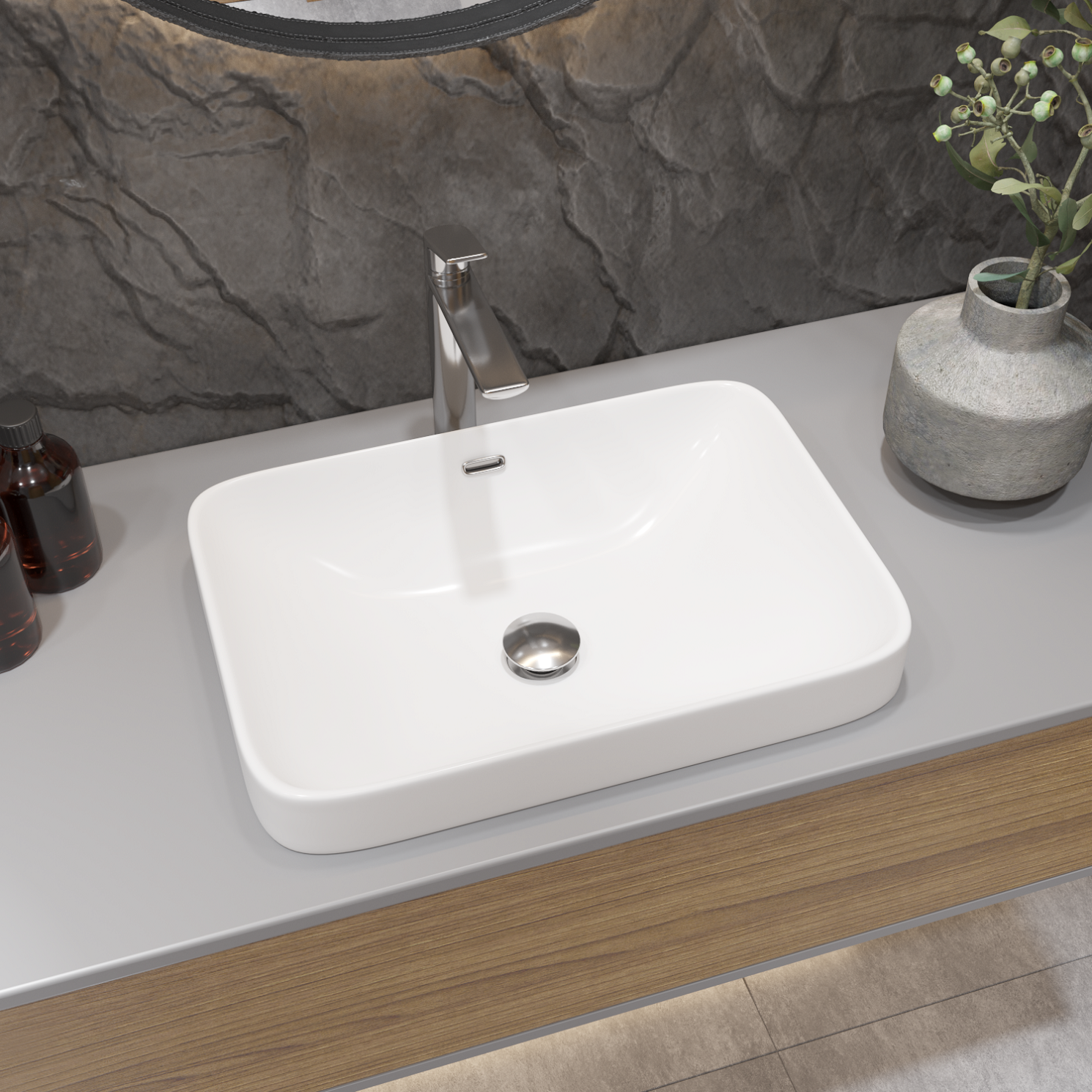 Встраиваемая раковина в ванную Helmken 44152000 комплект 3 в 1: умывальник прямоугольный 52 см, сифон и донный клапан click-clack в цвете хром интересное:
