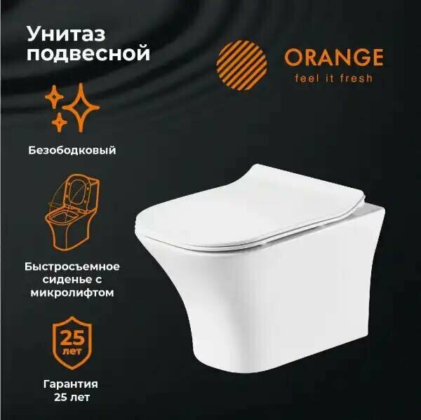 Унитаз подвесной Orange C02 безободковый, с сиденьем микролифт интересное: