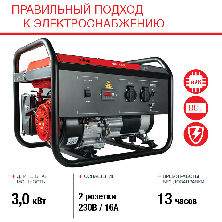Генератор бензиновый FUBAG BS 3300, 3,3 кВА, 230 В, 8641452 интересное: