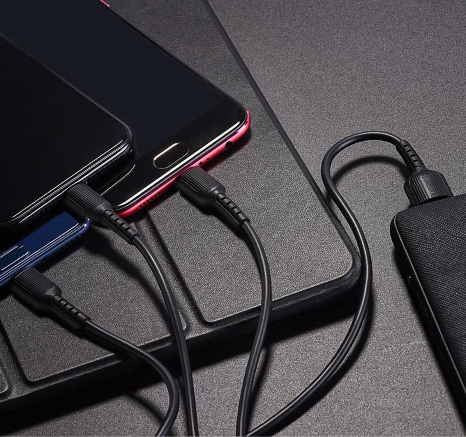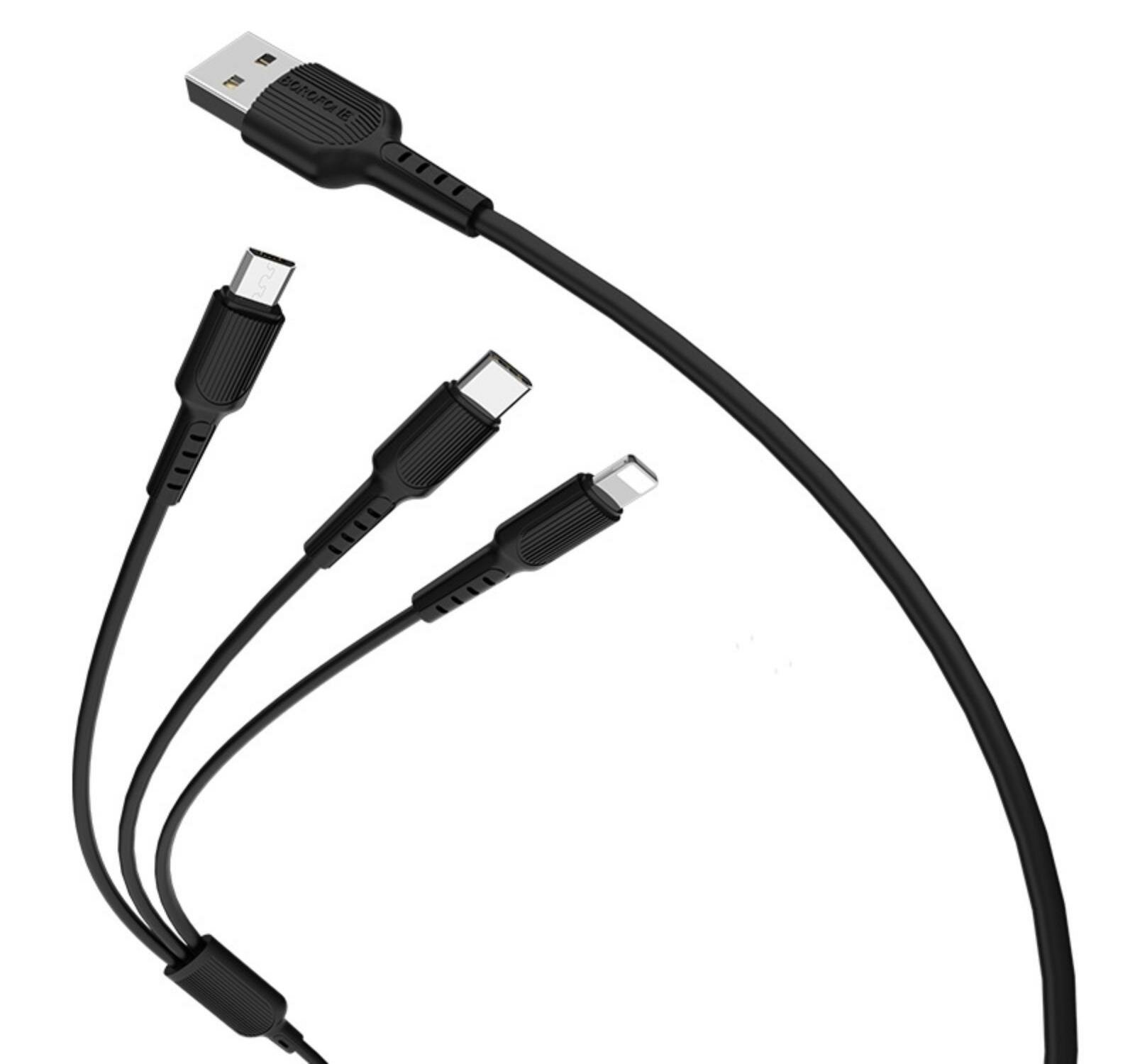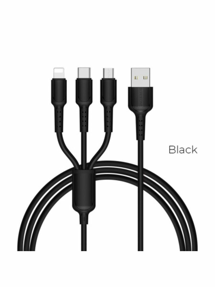 Купить Дата-кабель Borofone BX16 (3 в 1) USB-Type-C/Lightning/MicroUSB, 1 м, черный