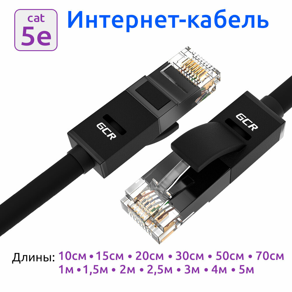 Купить LAN кабель GCR для подключения интернета cat5e RJ45 1Гбит/c 1.5м патч корд черный