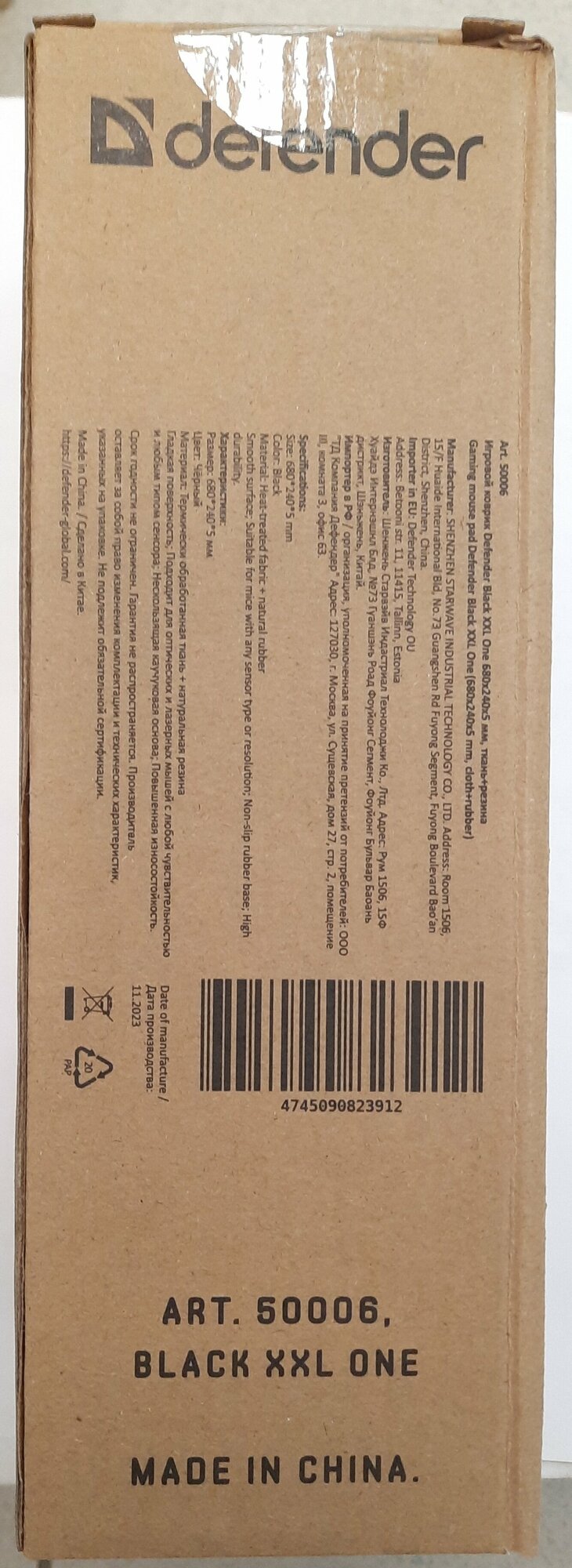 Игровой коврик Defender Black XXL One 680x240x5 мм, ткань+резина