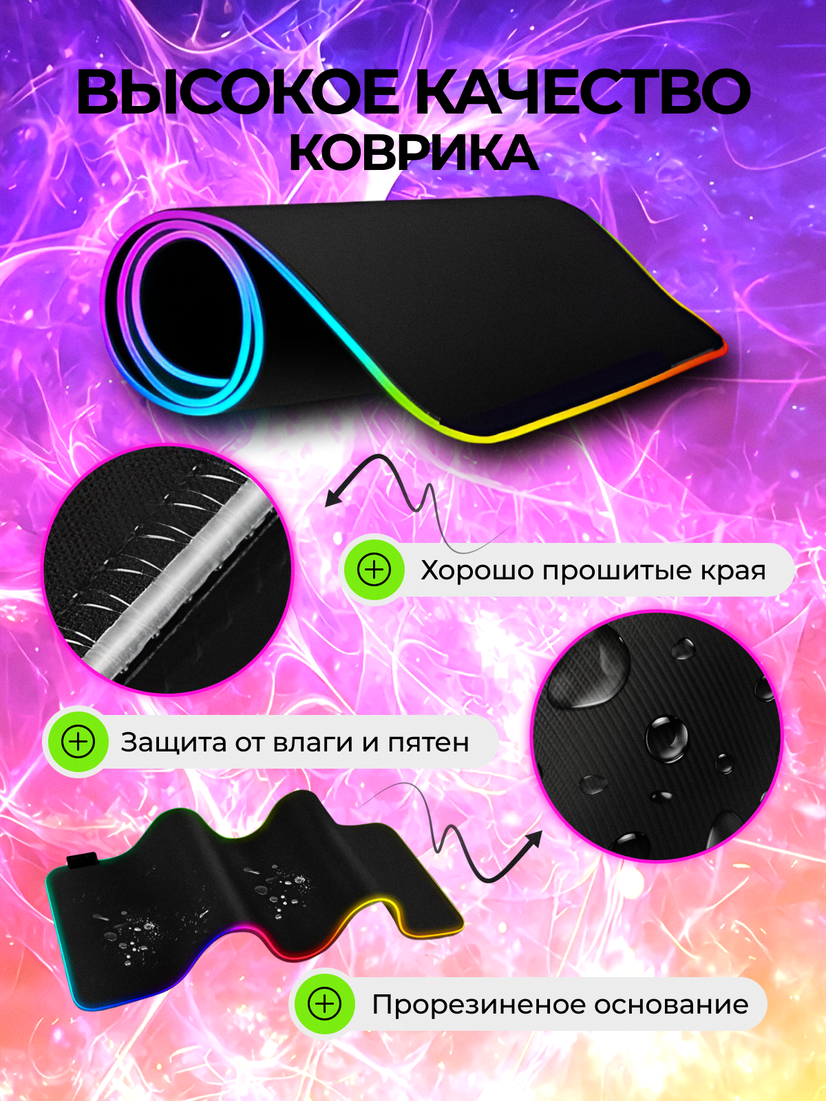Игровой коврик Defender с подсветкой, 90х35 см RGB Premium качество