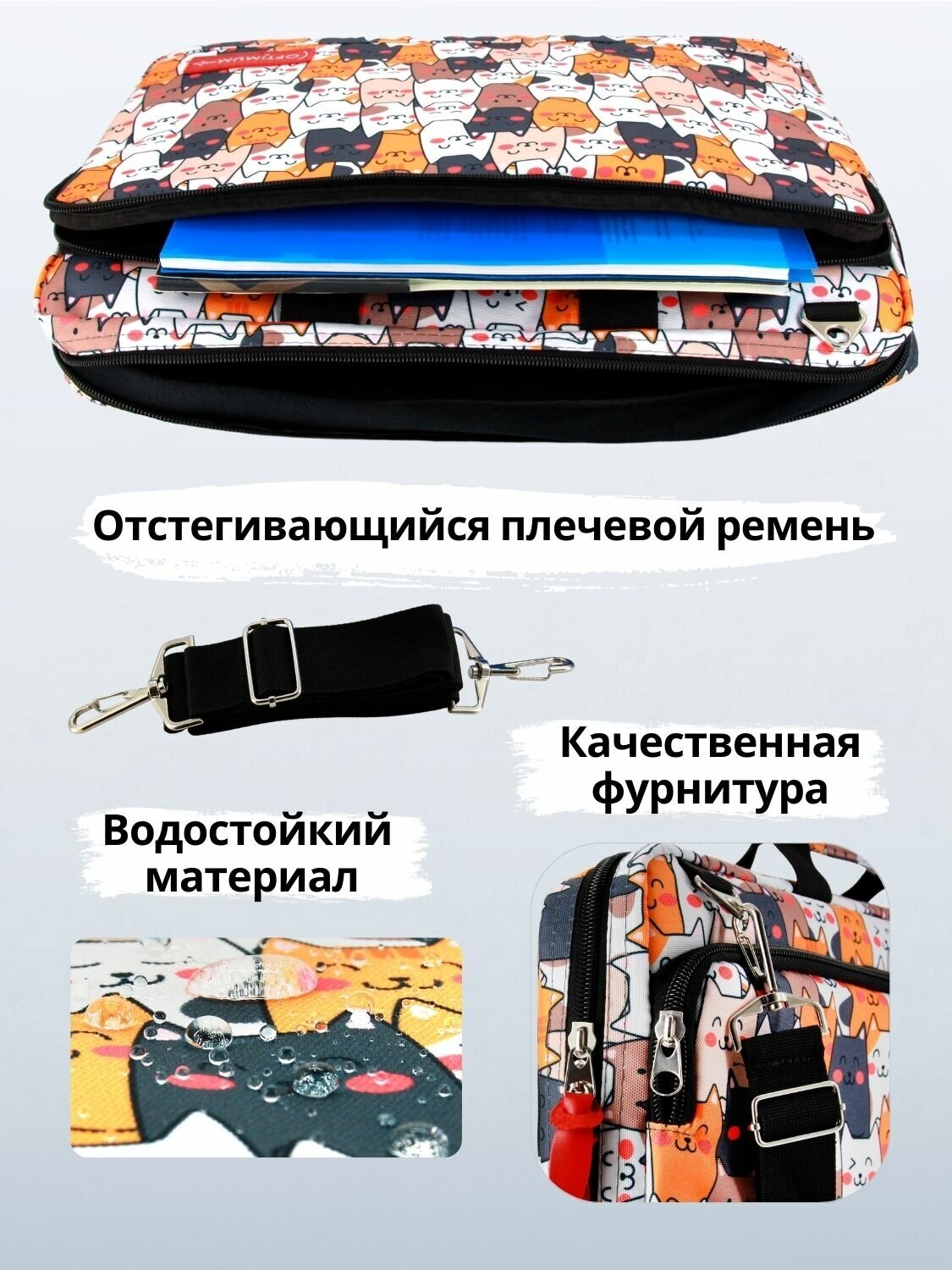СохранитьСумка для ноутбука 17.3 17 18 дюймов с ремнем мужская женская, котики интересное: