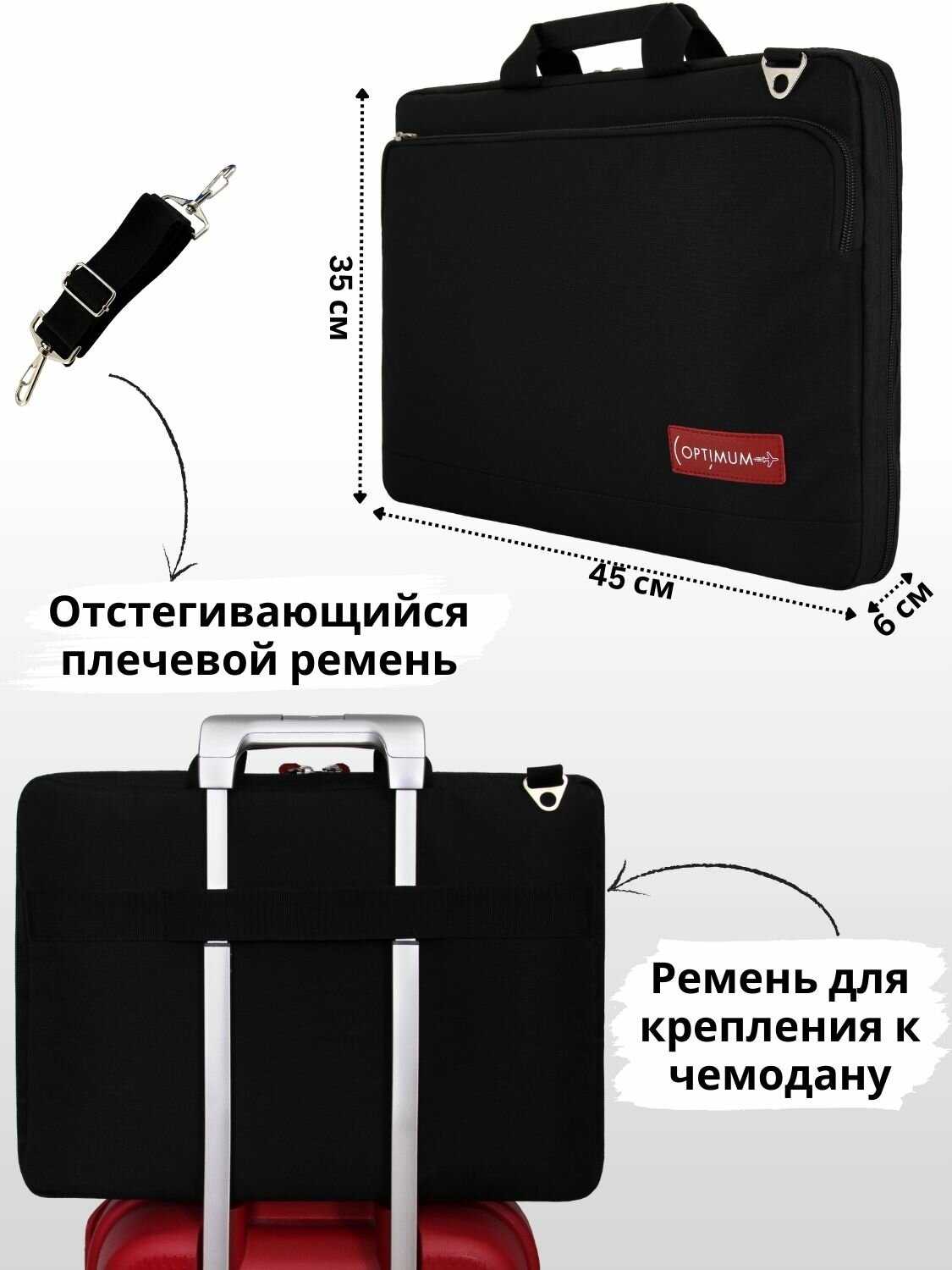 | Особенности | внешний карман, возможность крепления на тележку, защита от воды, карман для телефона, плечевой ремень |