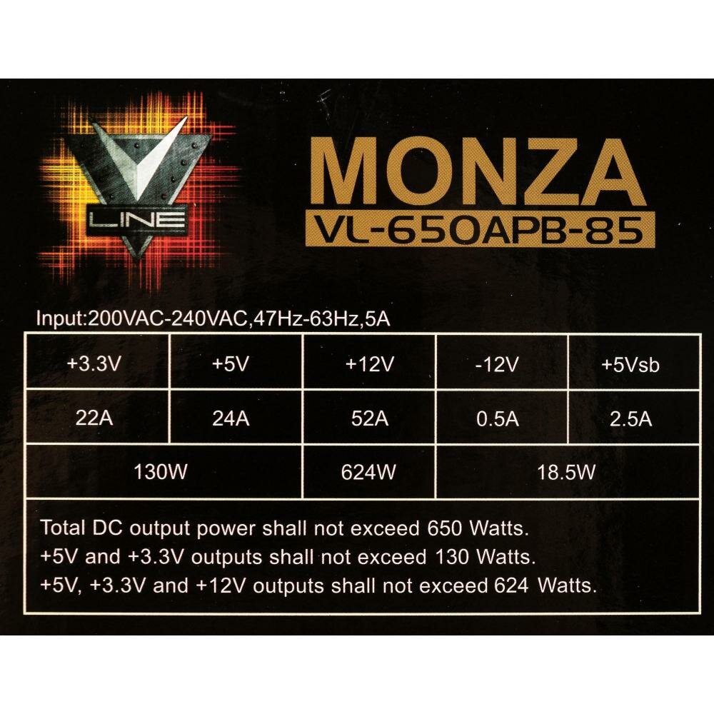Блок питания 650W ATX Formula MONZA VL-650APB-85 80+ bronze (24+4+4pin) APFC 120mm fan 7xSATA RTL . интересное: