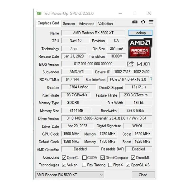 | Объем видеопамяти (подробно) | 6144 МБ |