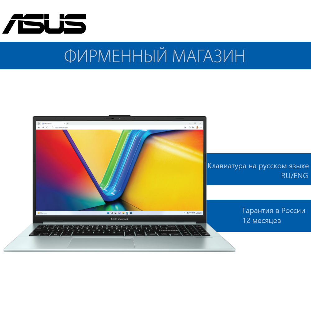 Ноутбук ASUS VivoBook Go 15 OLED E1504FA-L1528, 15.6" (1920x1080) OLED/AMD Ryzen 5 7520U/16ГБ DDR5/512ГБ SSD/Radeon Graphics/Без ОС, зеленый (90NB0ZR3-M00YV0)