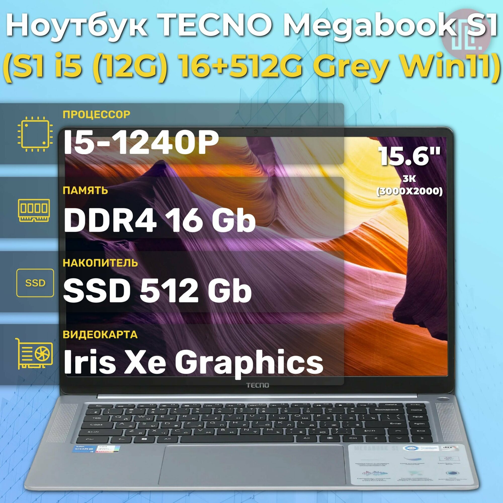 Ноутбук Tecno MegaBook-S1 i5 16/512G Grey Win11 15.6" (S1I5W15.512.GR) интересное: