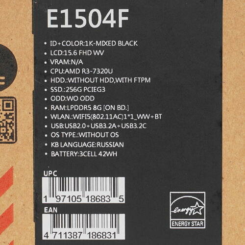 15.6" Ноутбук ASUS Vivobook Go 15 E1504FA-BQ656 Full HD (1920x1080), IPS, AMD Ryzen 3 7320U, ядра: 4 х 2.4 ГГц, RAM 8 ГБ, SSD 256 ГБ, AMD Radeon 610M , без ОС [90NB0ZR2-M012P0] черный интересное: