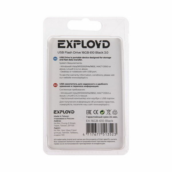 Флэш-накопитель EXPLOYD EX-16GB-610, USB 3.0, черный