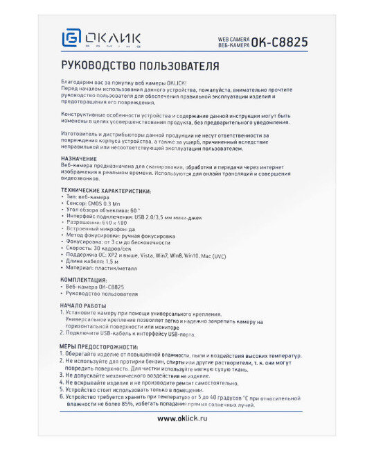 Ниже Вы можете прочитать отзывы на Web камера Оклик ОК-С8825 с микрофоном (черный), ознакомится с подробными характеристиками, посмотреть интересные обзоры и фотографии на Web камера Оклик ОК-С8825 с микрофоном (черный).