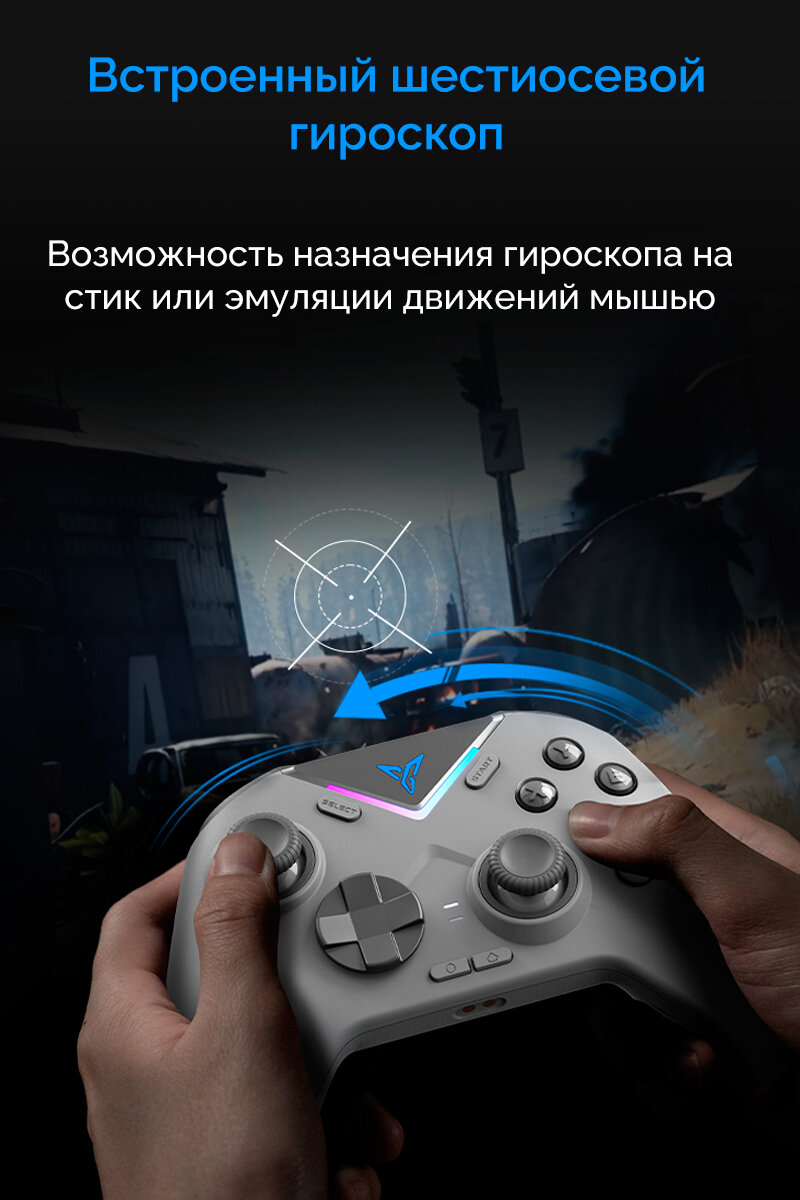| Дополнительная информация | Триггеры на датчиках холла с двумя режимами работы, гироскоп, вибрация, настраиваемая RGB-подстветка, запись макросов, регулировка кривых стиков |