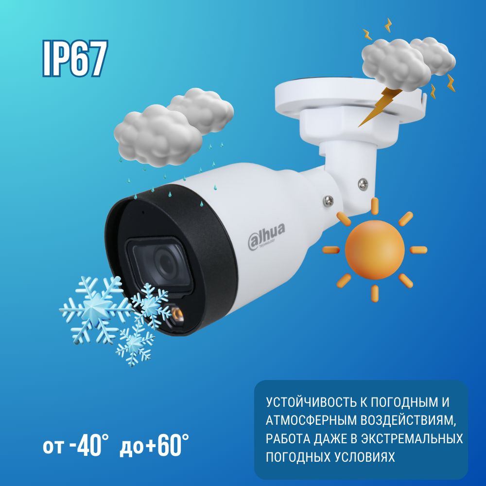 DAHUA DH-IPC-HFW1439SP-A-LED-0280B-S4 Уличная цилиндрическая IP-видеокамера Full-color 4Мп, 1/3” CMOS, объектив 2.8мм, LED-подсветка до 30м, IP67, кор