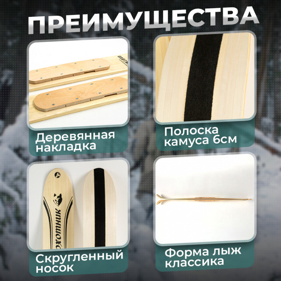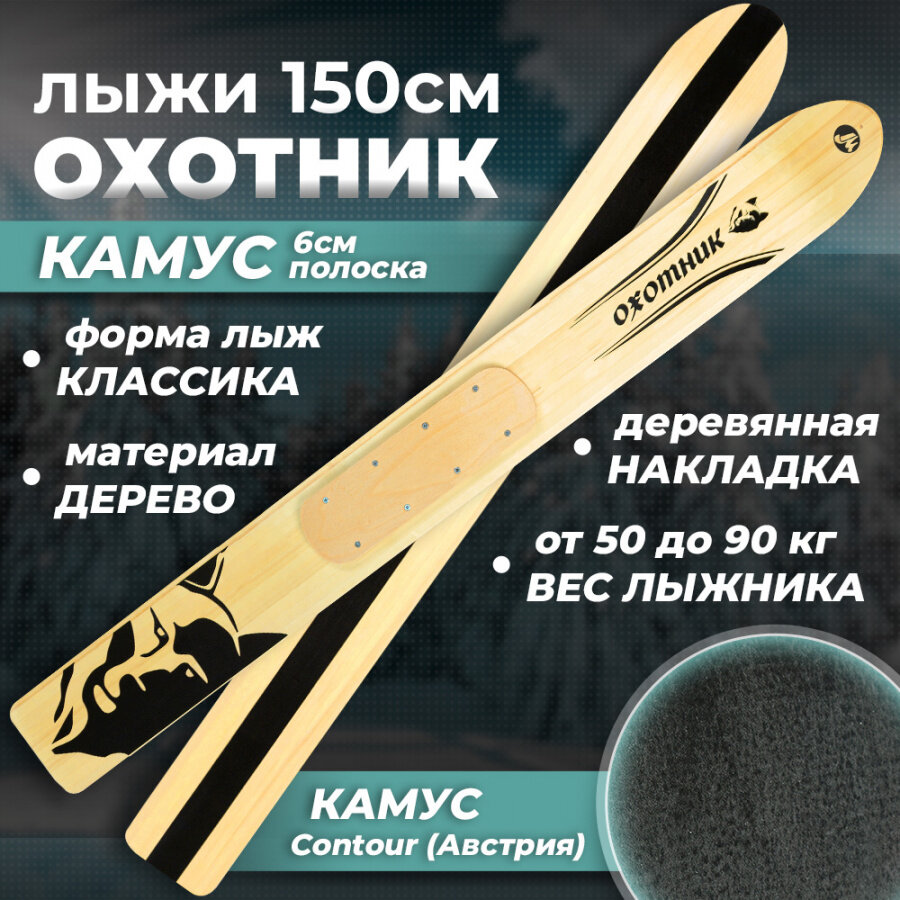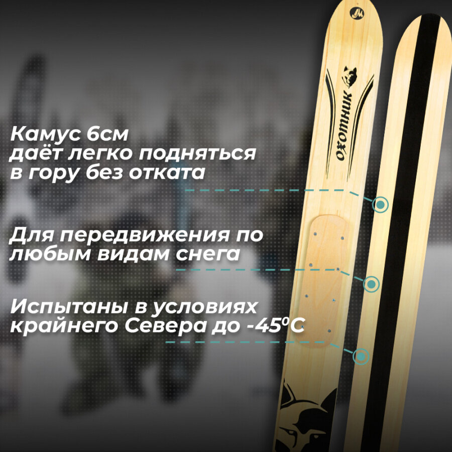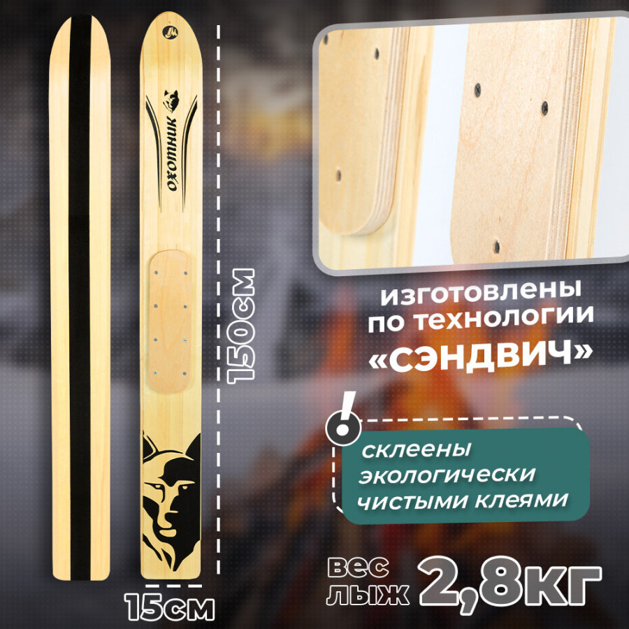 Охотничьи лыжи Маяк Охотник 150х15 см деревянные с камусом 6 см и деревянными накладками интересное: