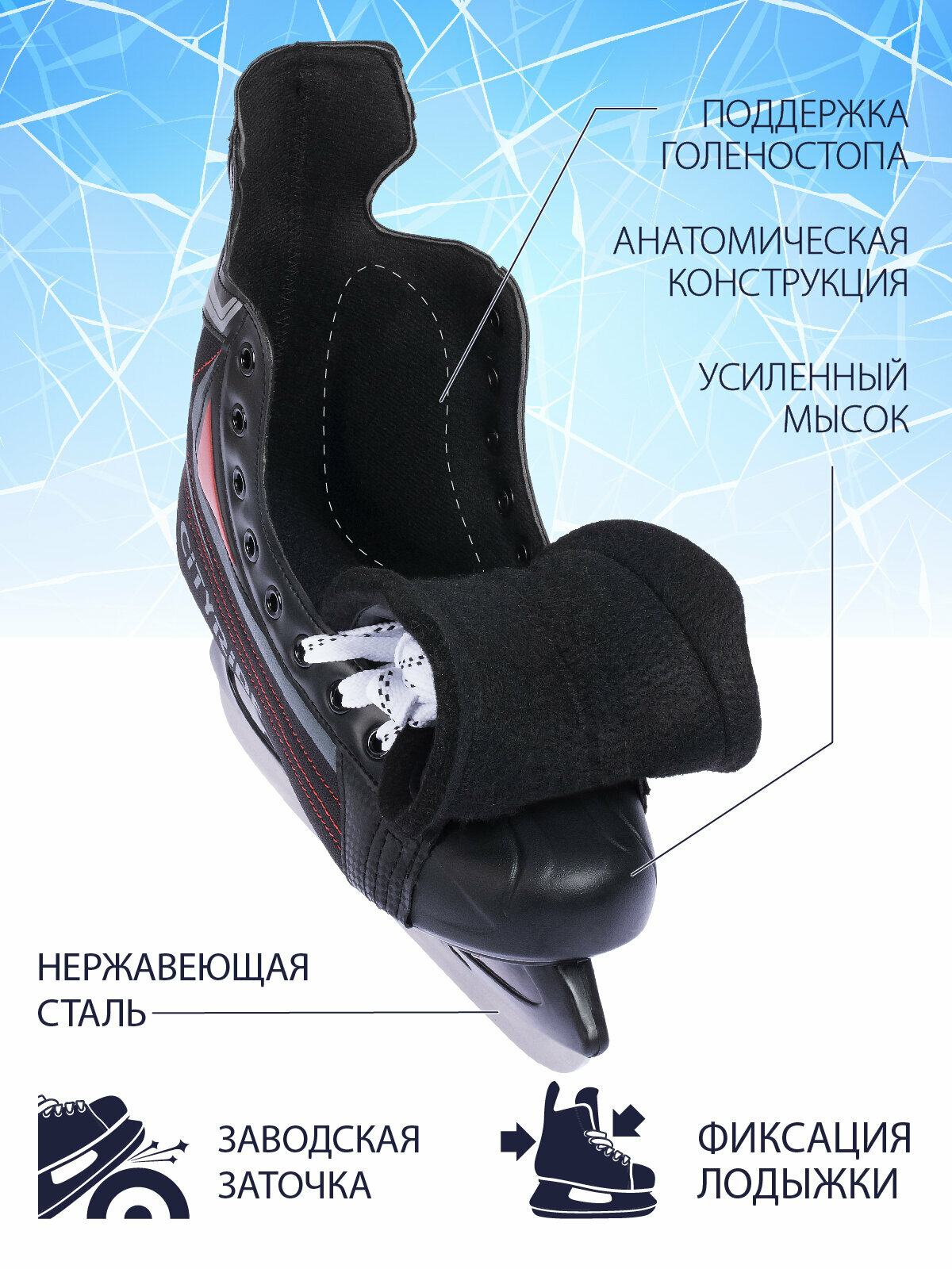 Хоккейные коньки ТМ City-Ride, лезвия нержавеющая сталь/заводская заточка, ботинки нейлон/ПВХ, чёрный/красный, 42
