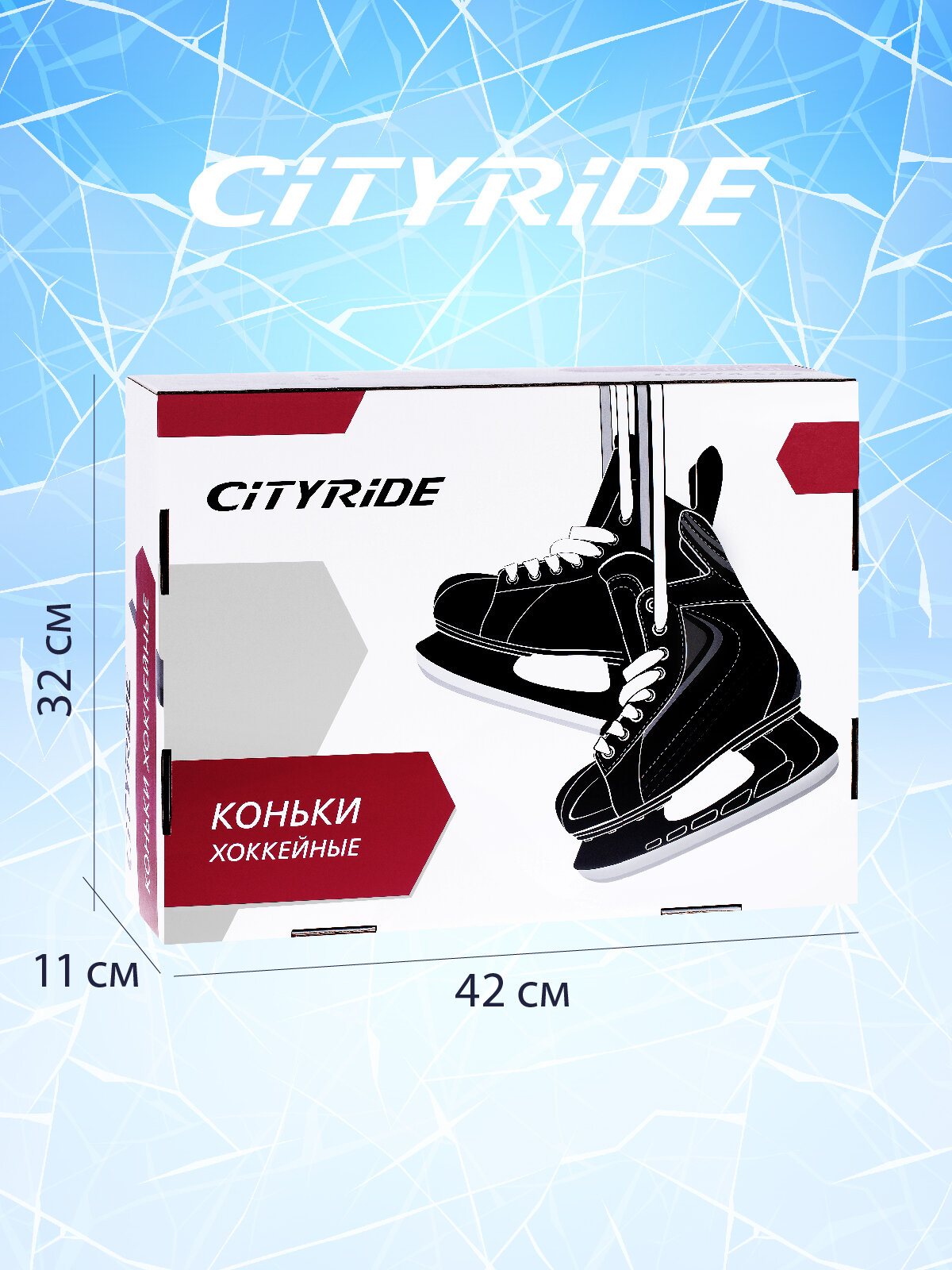 Хоккейные коньки ТМ City-Ride, лезвия нержавеющая сталь/заводская заточка, ботинки нейлон/ПВХ, чёрный/синий, 40(RUS39)