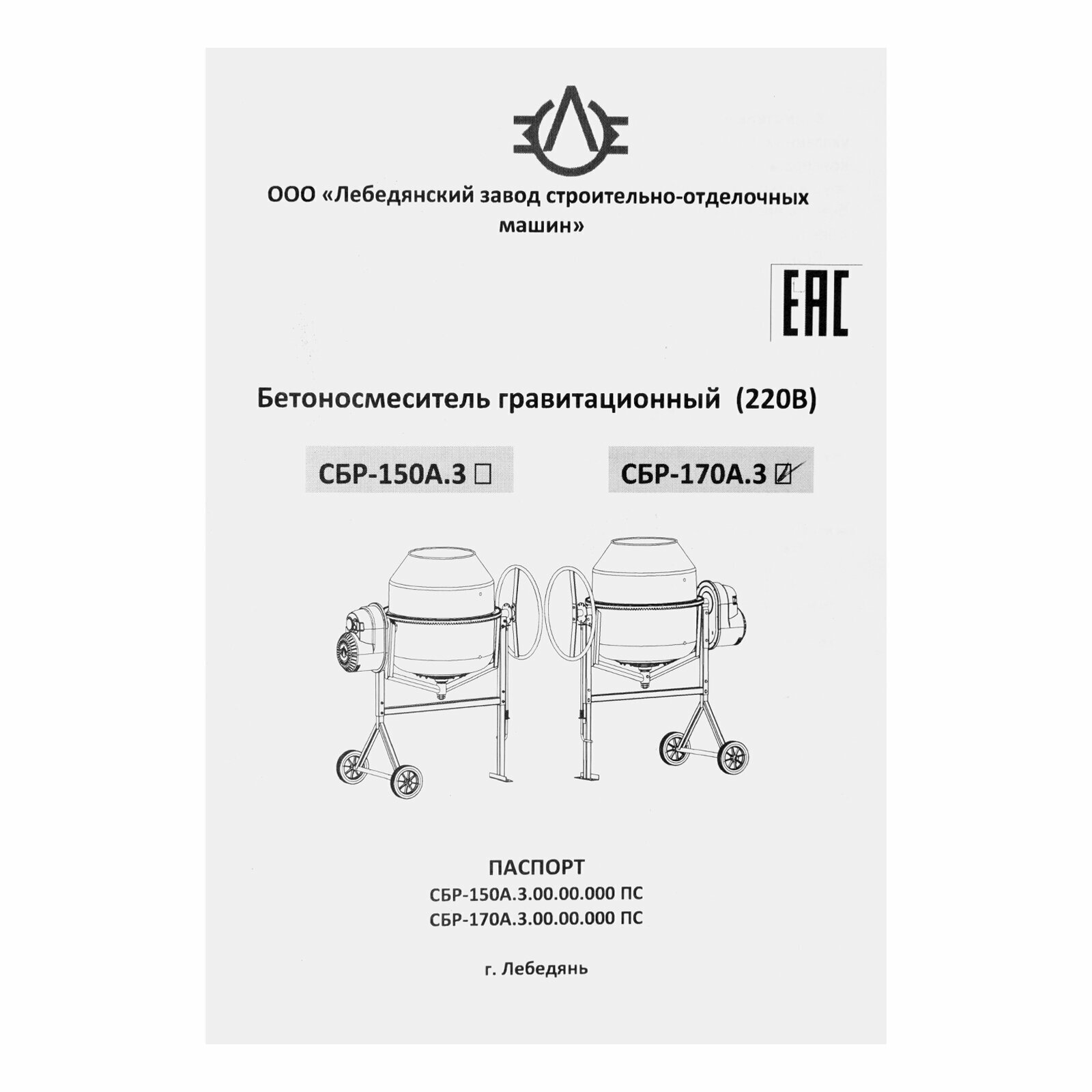 Бетономешалка лебедянь СБР-150А.3 150л 1.0кВт 220В