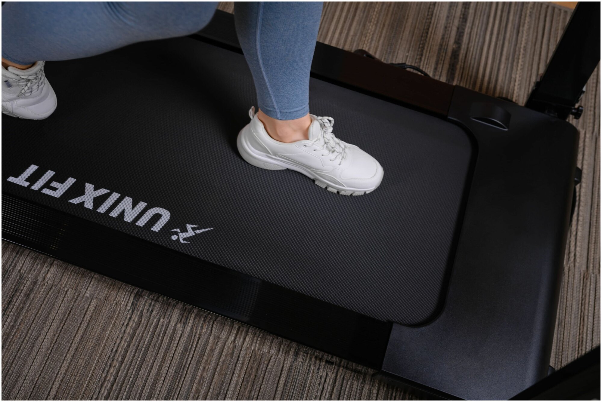 Беговая дорожка UNIX Fit Hi-tech F1 Dark Storm, мощность 2.5 л.с., до 110 кг, беговое полотно 120 x 43 см, скорость 0.8 - 14 км/ч, в комплекте коврик UNIXFIT