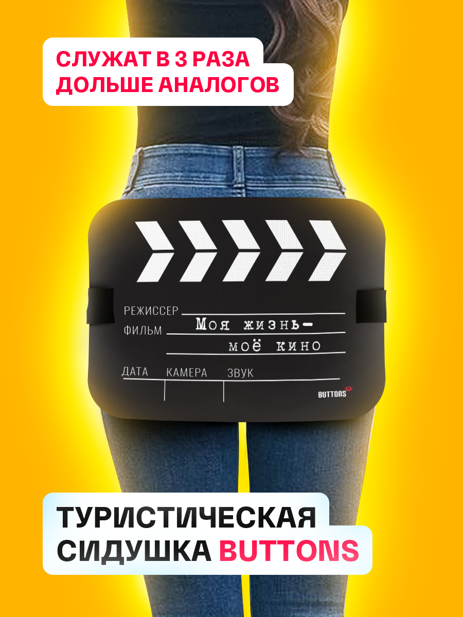 Сидушка-коврик туристическая под попу Buttons, походная прямоугольная хоба с рисунком кинохлопушка интересное: