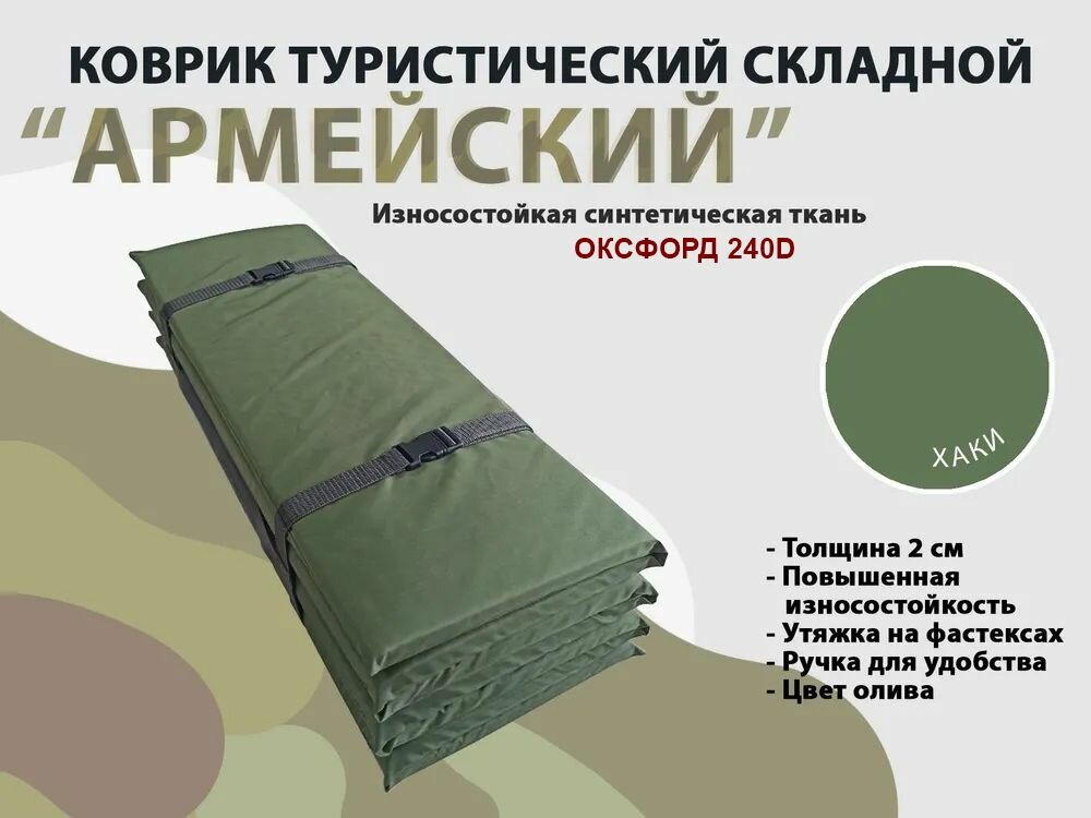 Коврик туристический складной (каремат) с ручкой, Скаут-2, хаки, олива, толщина 2 см интересное: