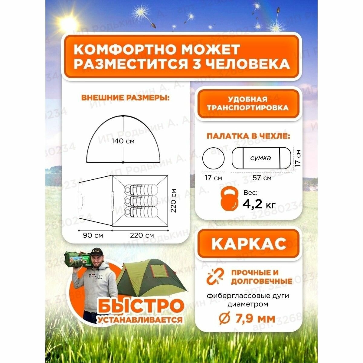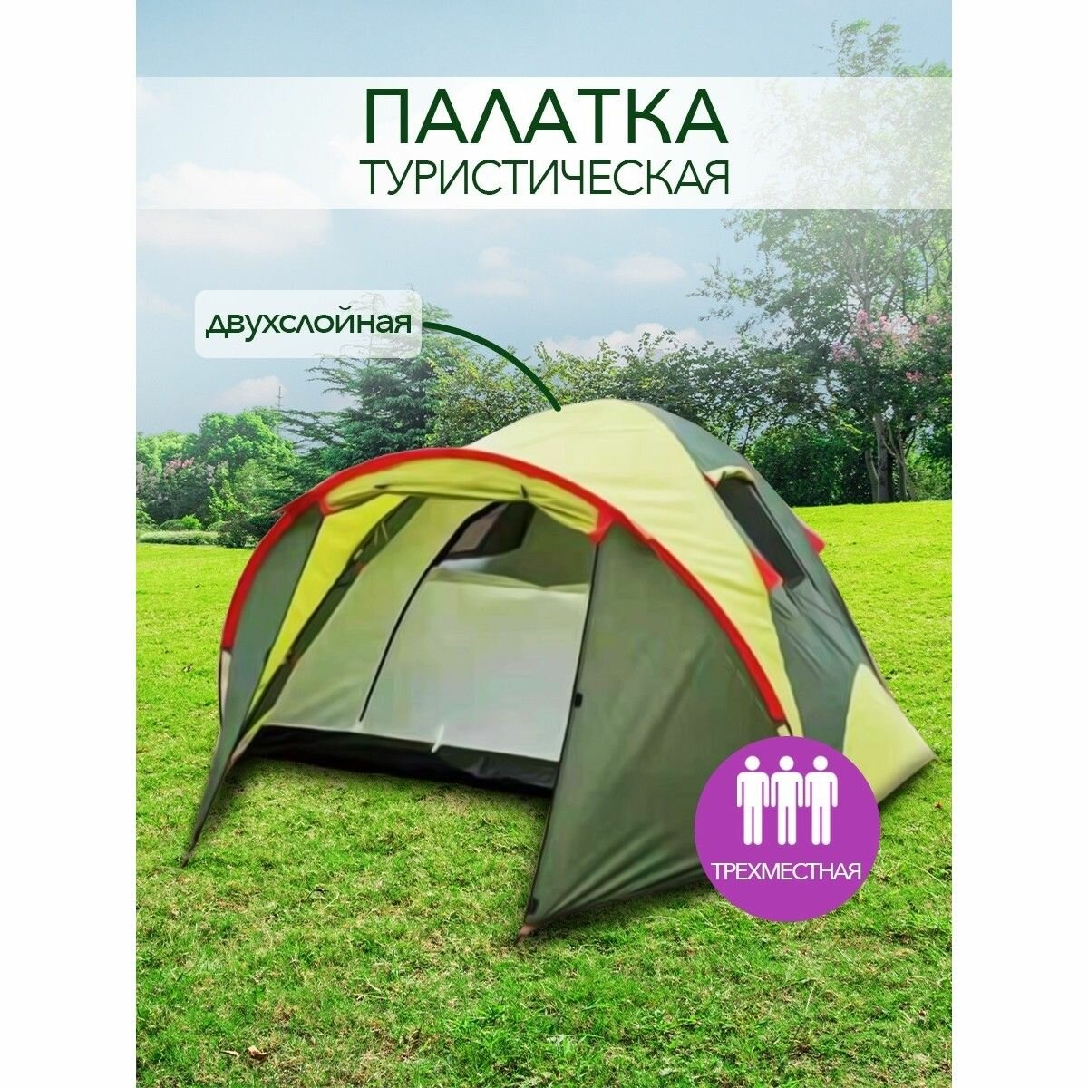 Палатка ART1908, 3-местная, кемпинговая, двухслойная, с тамбуром, зеленая