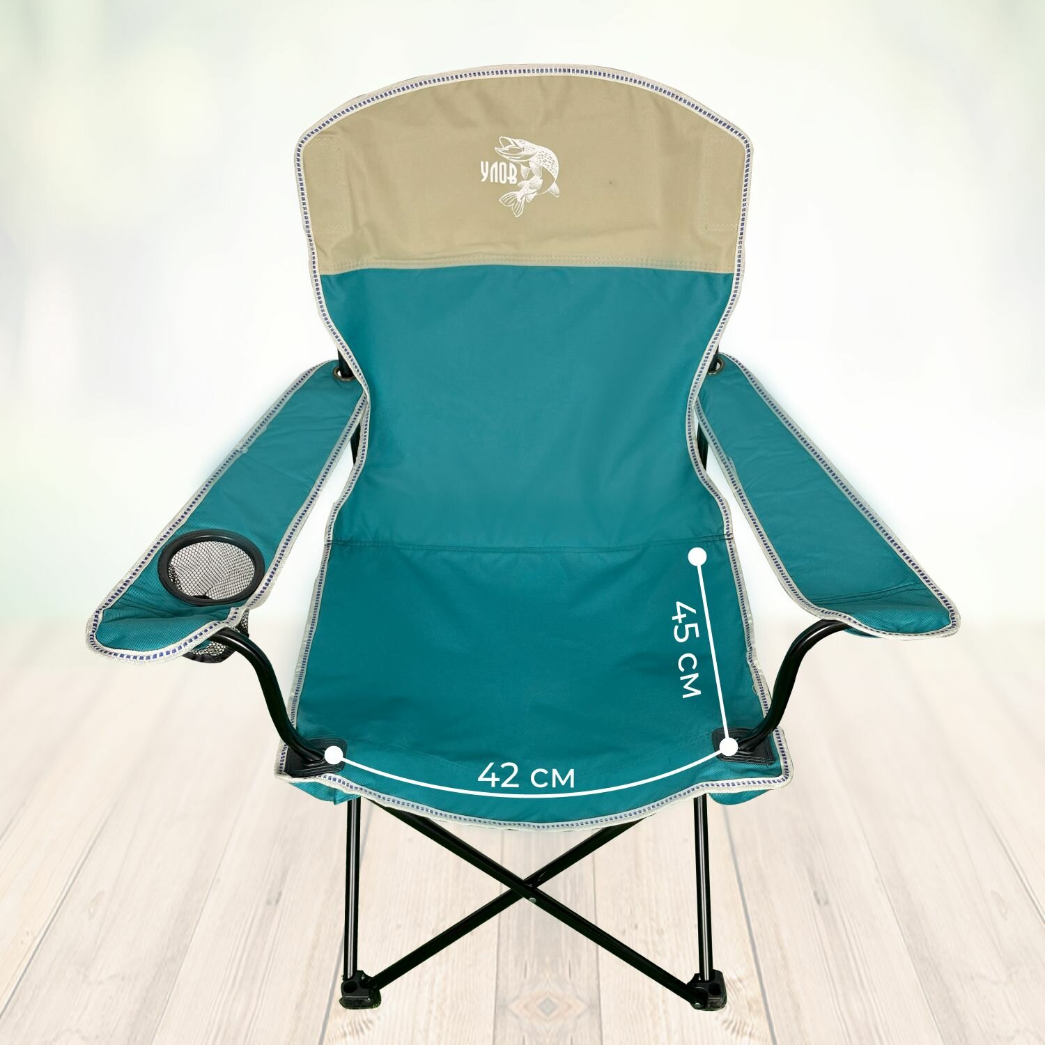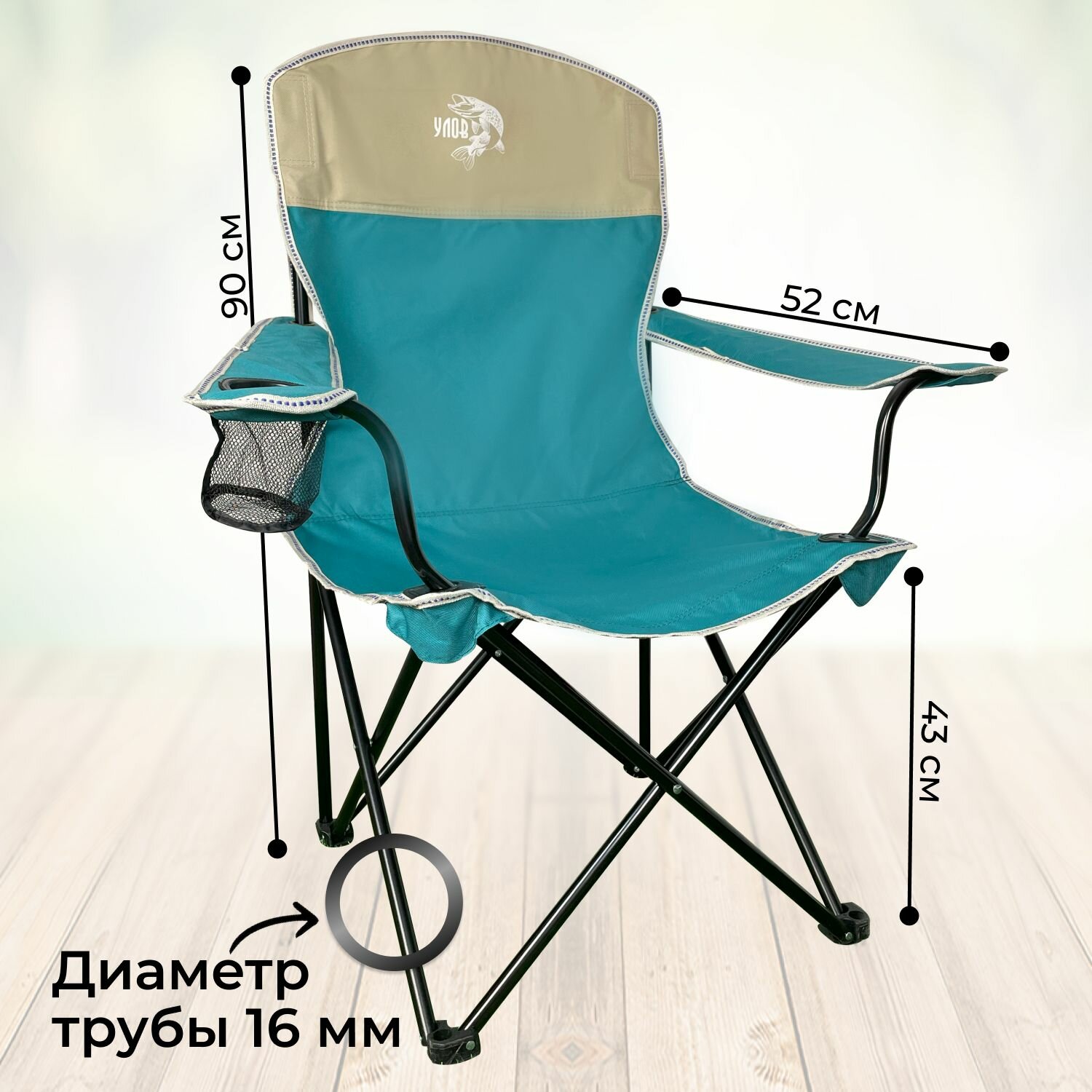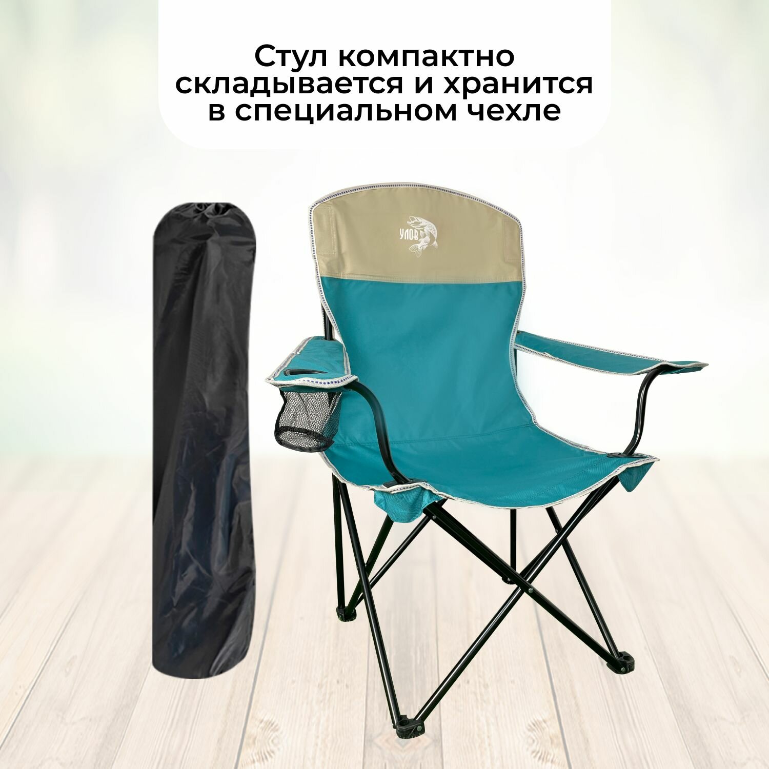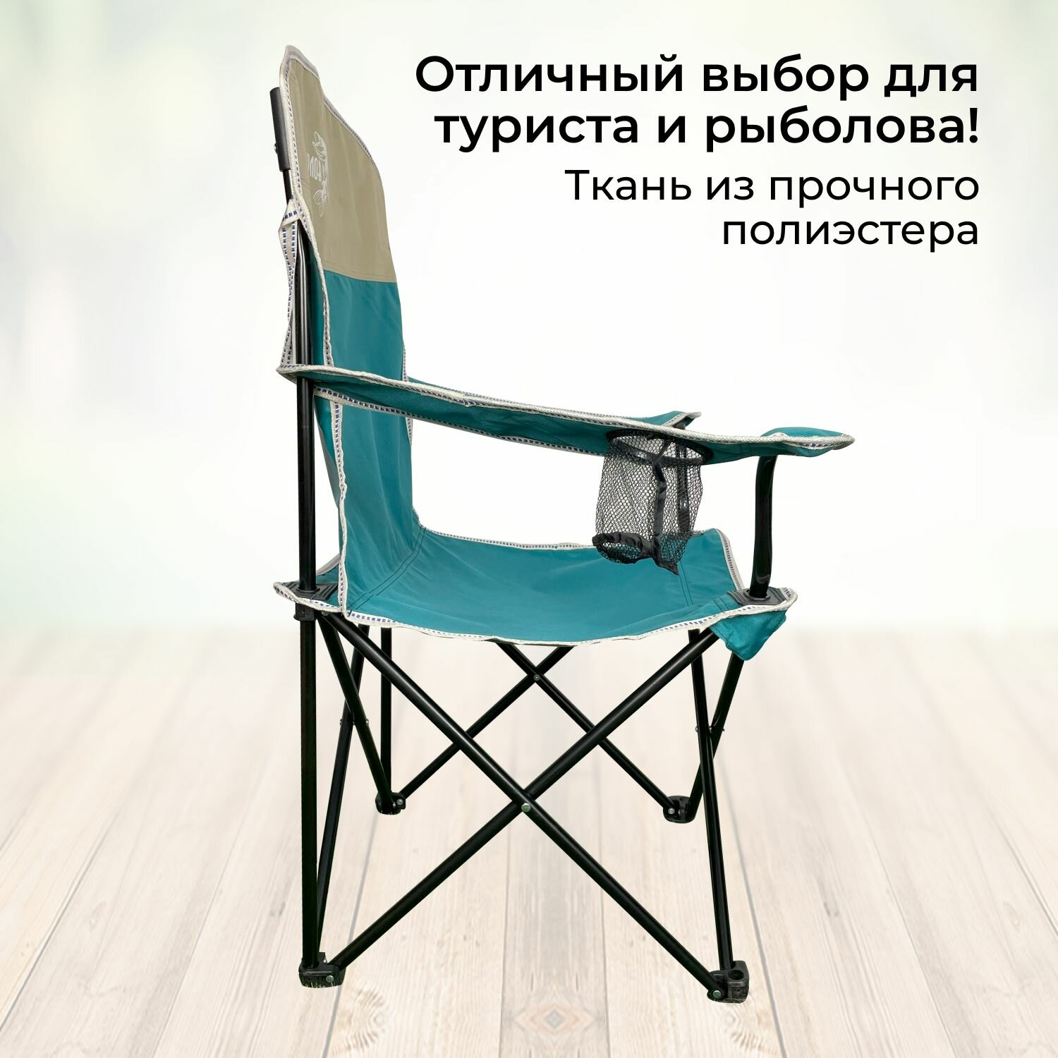 Кресло складное с ручками и подстаканником, в чехле, бирюзовый стул складной туристический, 90*53*51 см