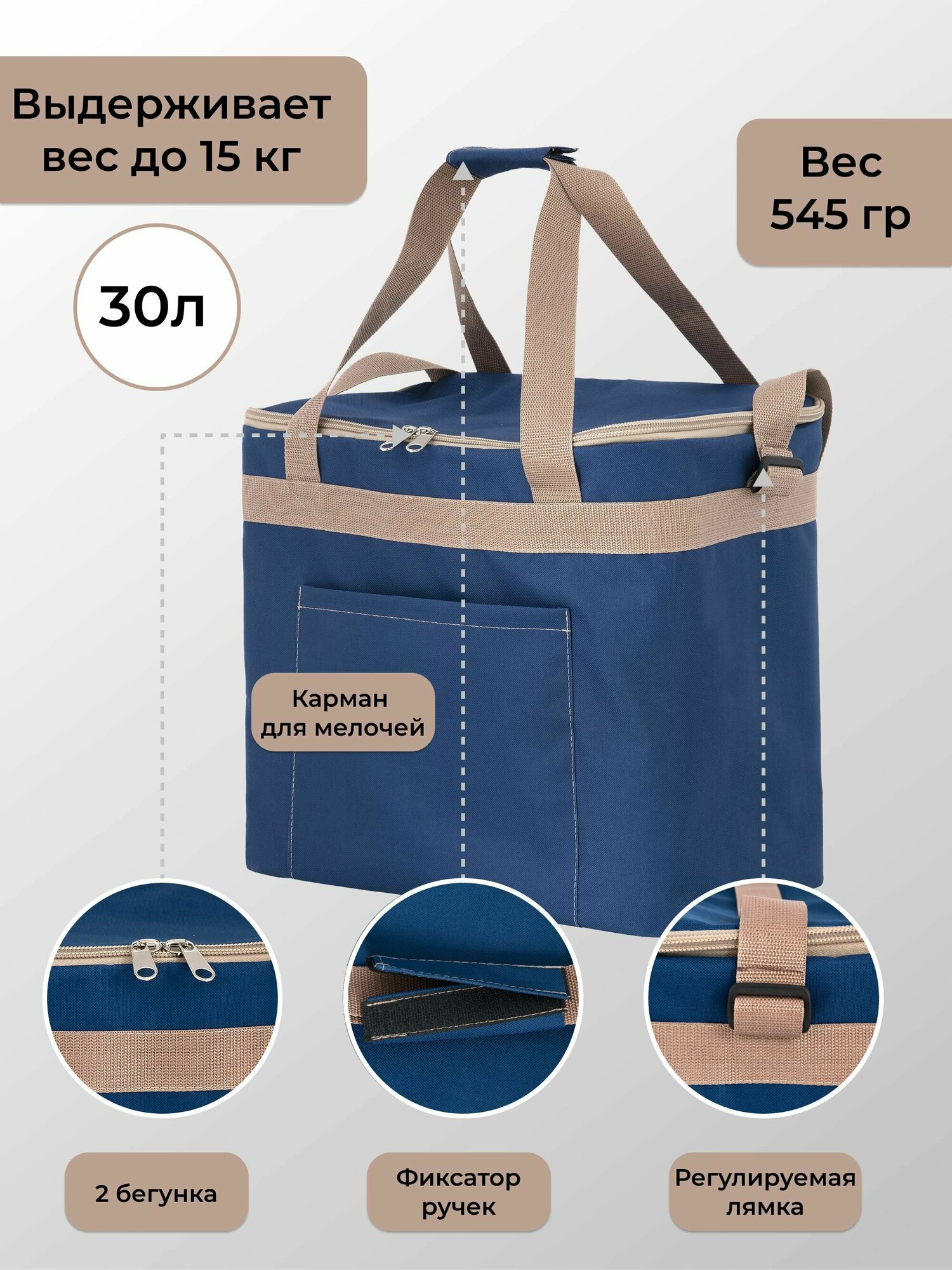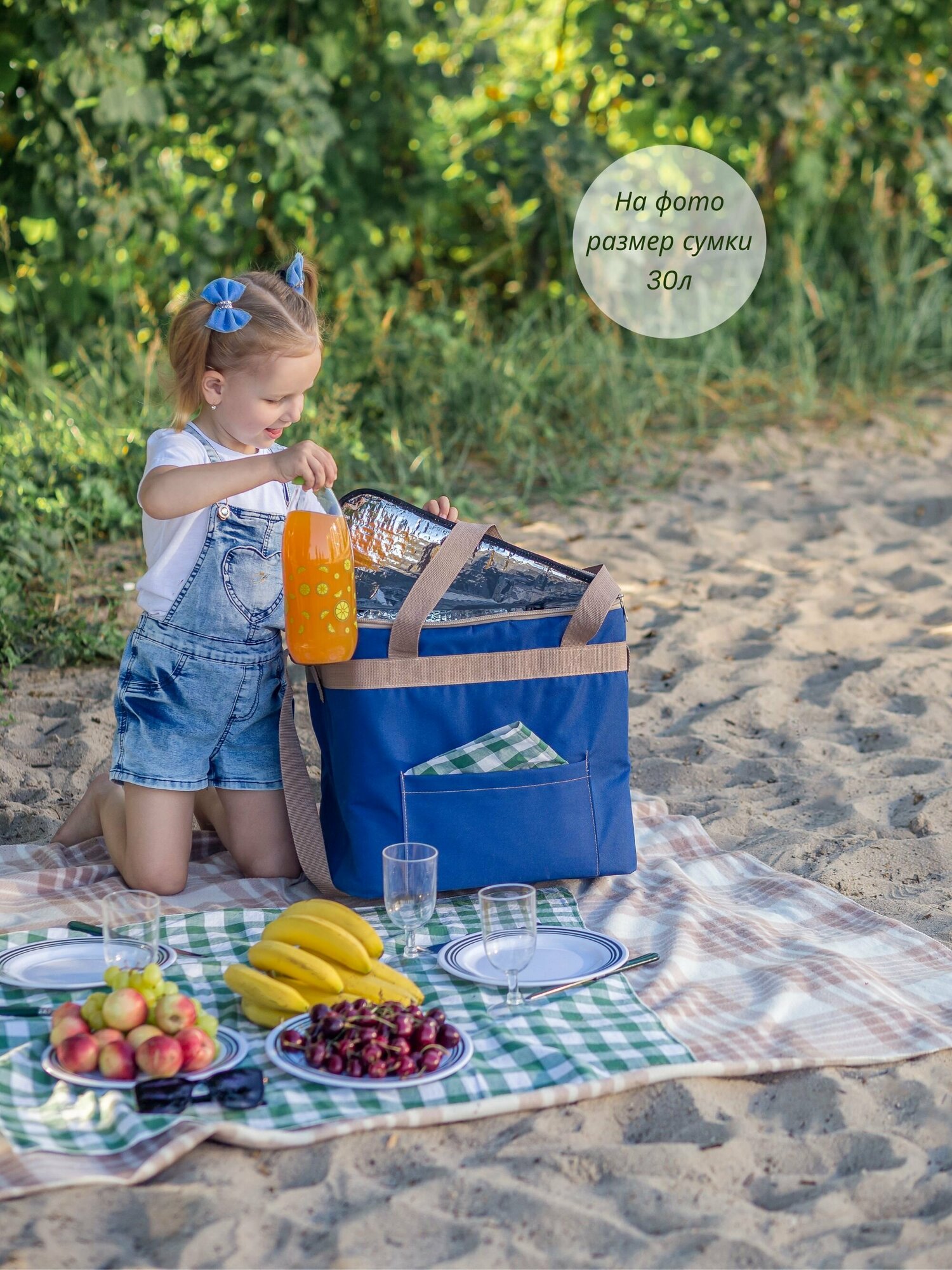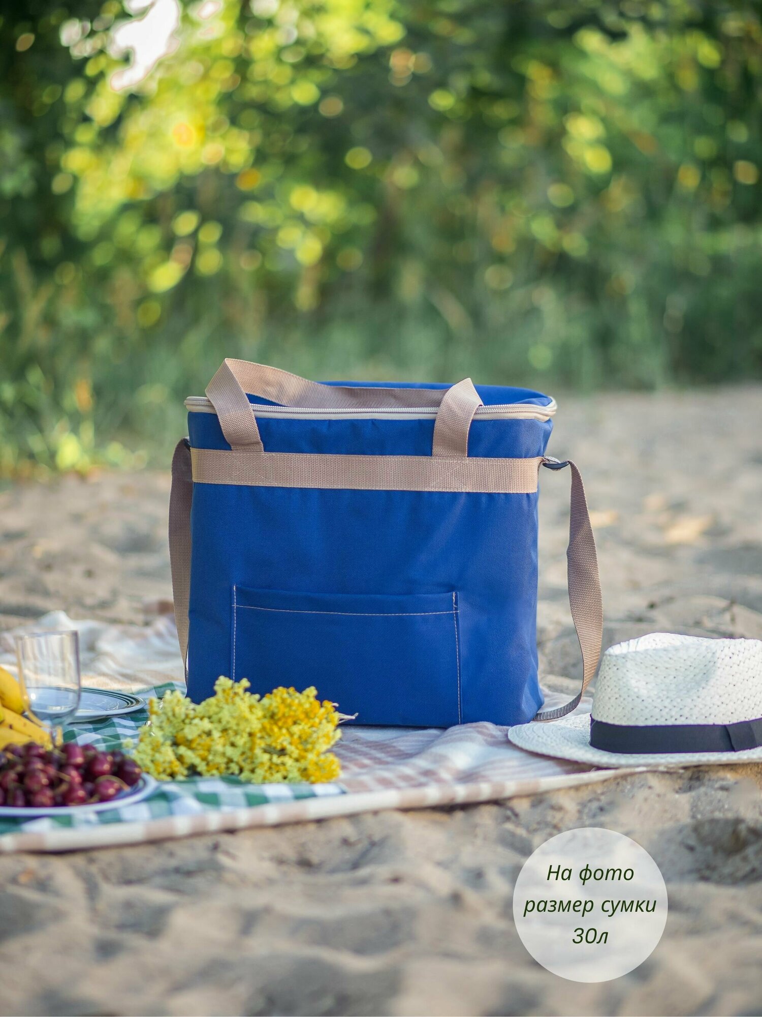 Термосумка UNGAI 40 л, сумка холодильник для пикника, походов, путешествий, синий/беж