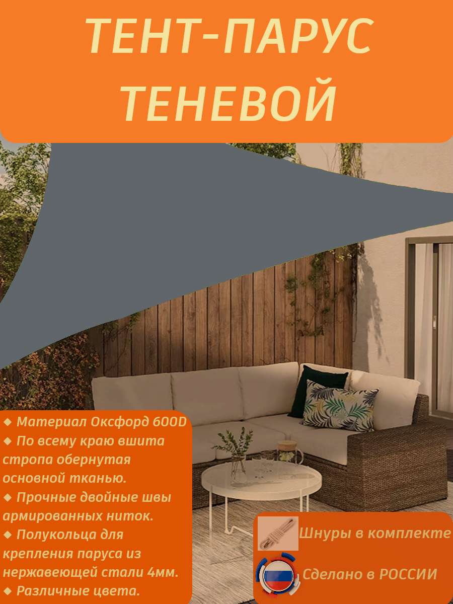 Тент-парус теневой туристический/садовый/пляжный 5х5х5/серый