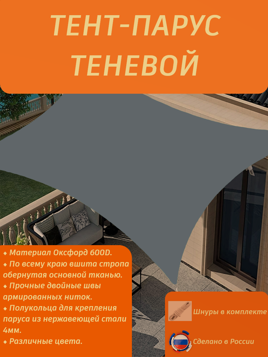 СохранитьТент-парус теневой туристический/садовый/пляжный 2,9х4/серый интересное: