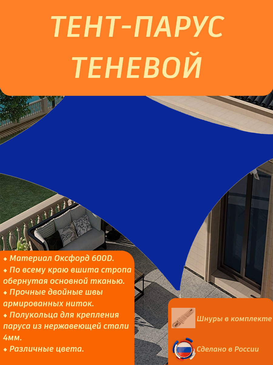 Тент-парус теневой туристический/садовый/пляжный 4х4/синий