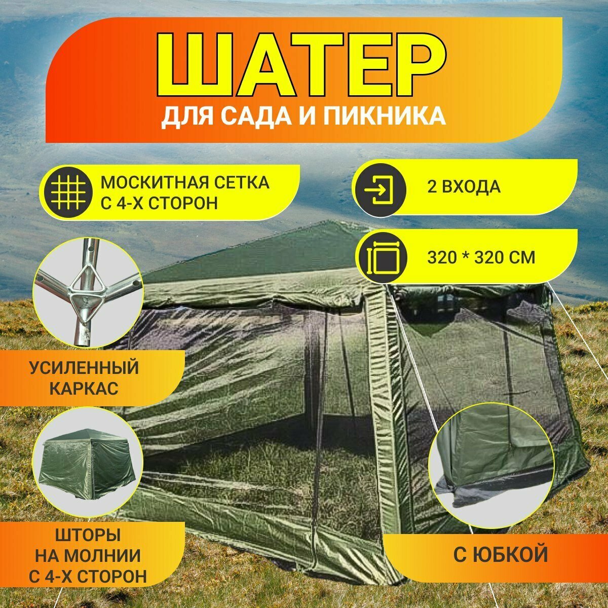 Купить Шатер садовый с москитной сеткой от солнца. Палатка шатер туристический. 1628D