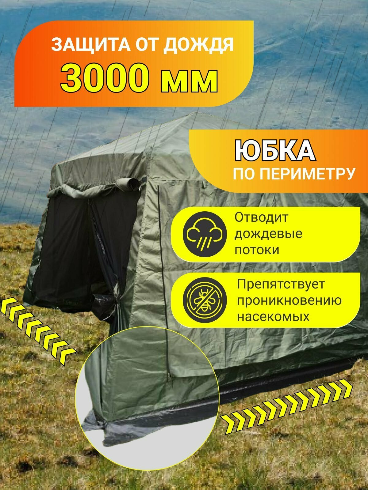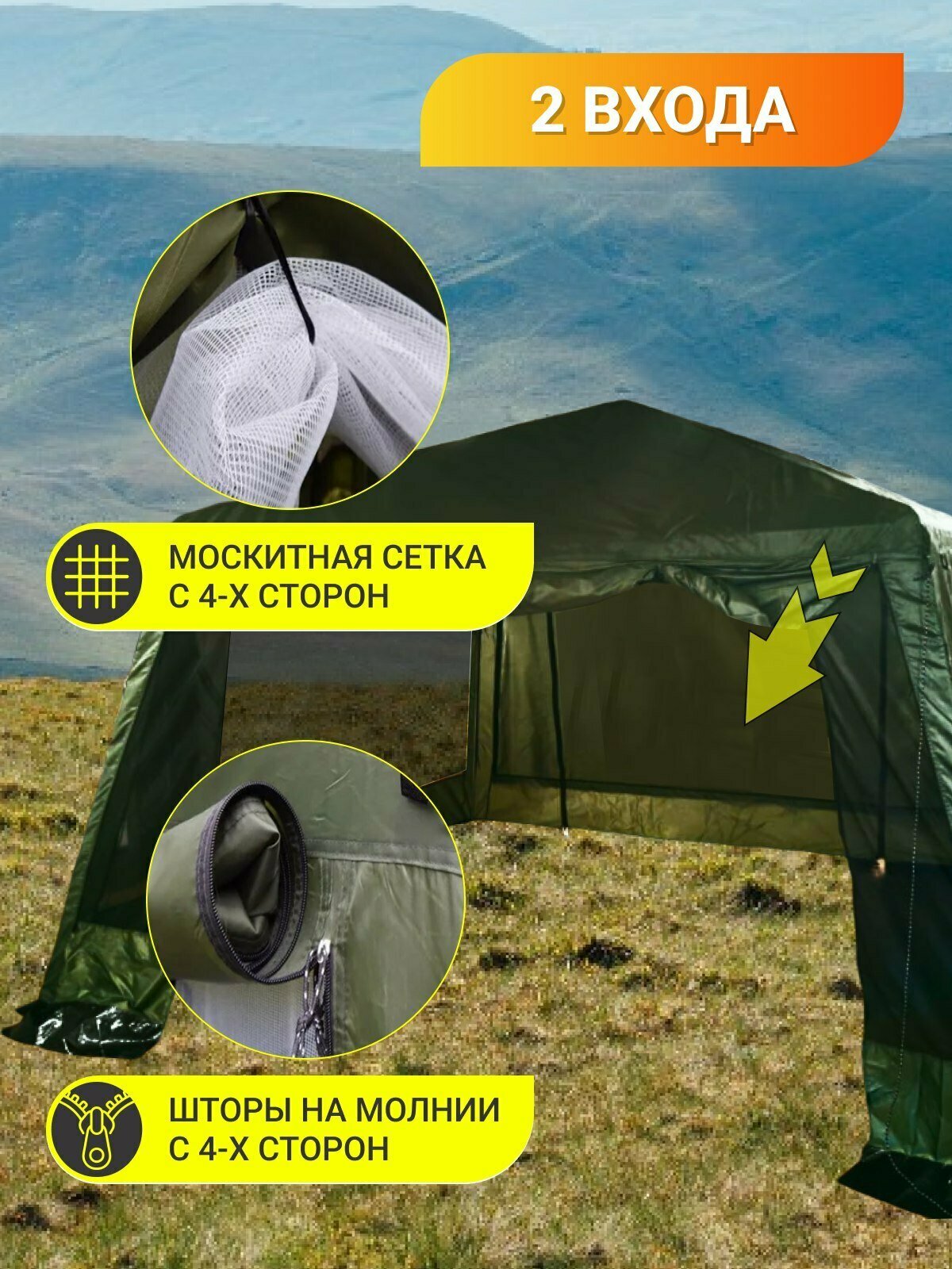 | Особенности | УФ-защита / быстросборный / вентиляционные окна / ветрозащитная юбка / водонепроницаемость / проклеенные швы |